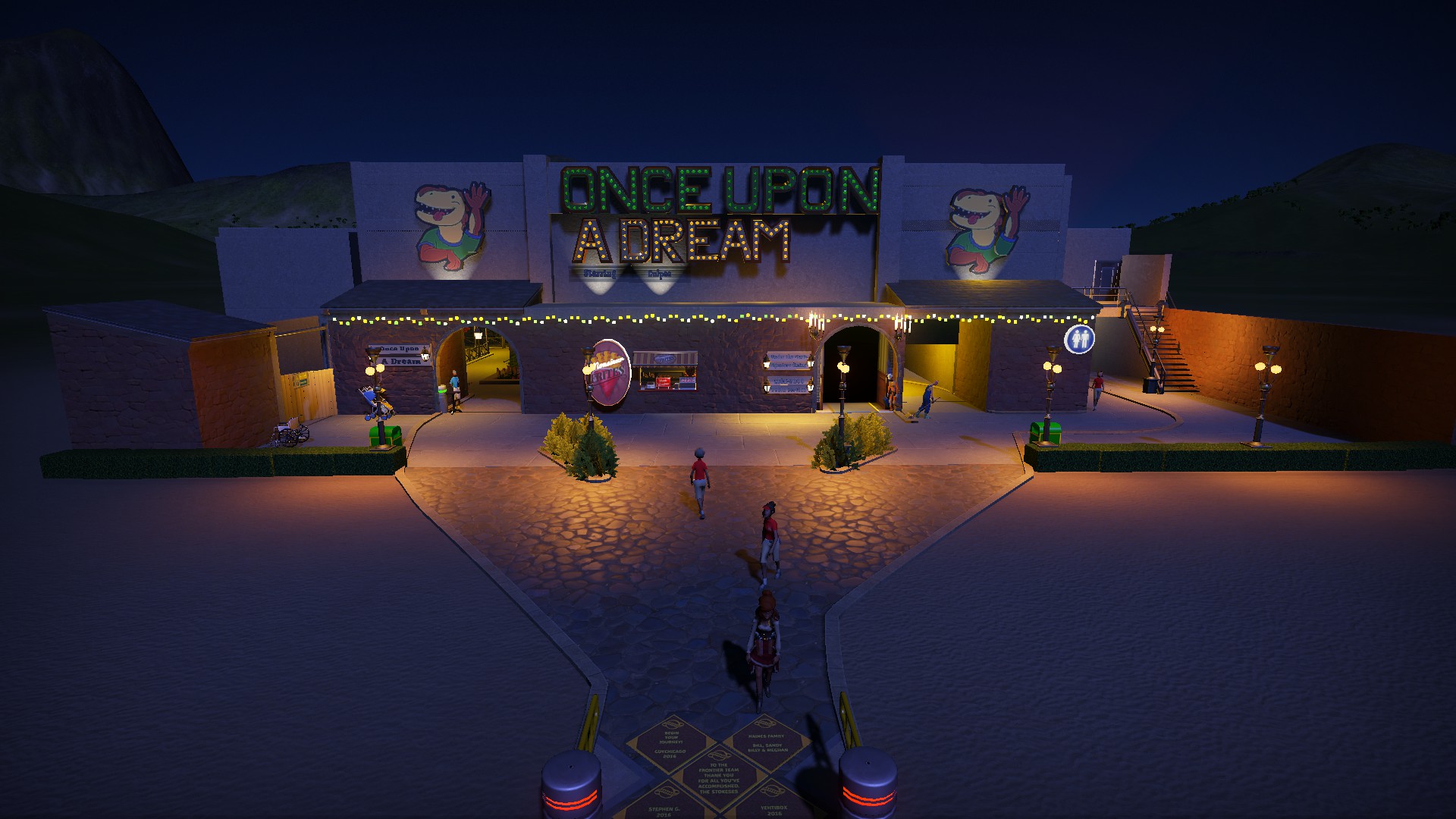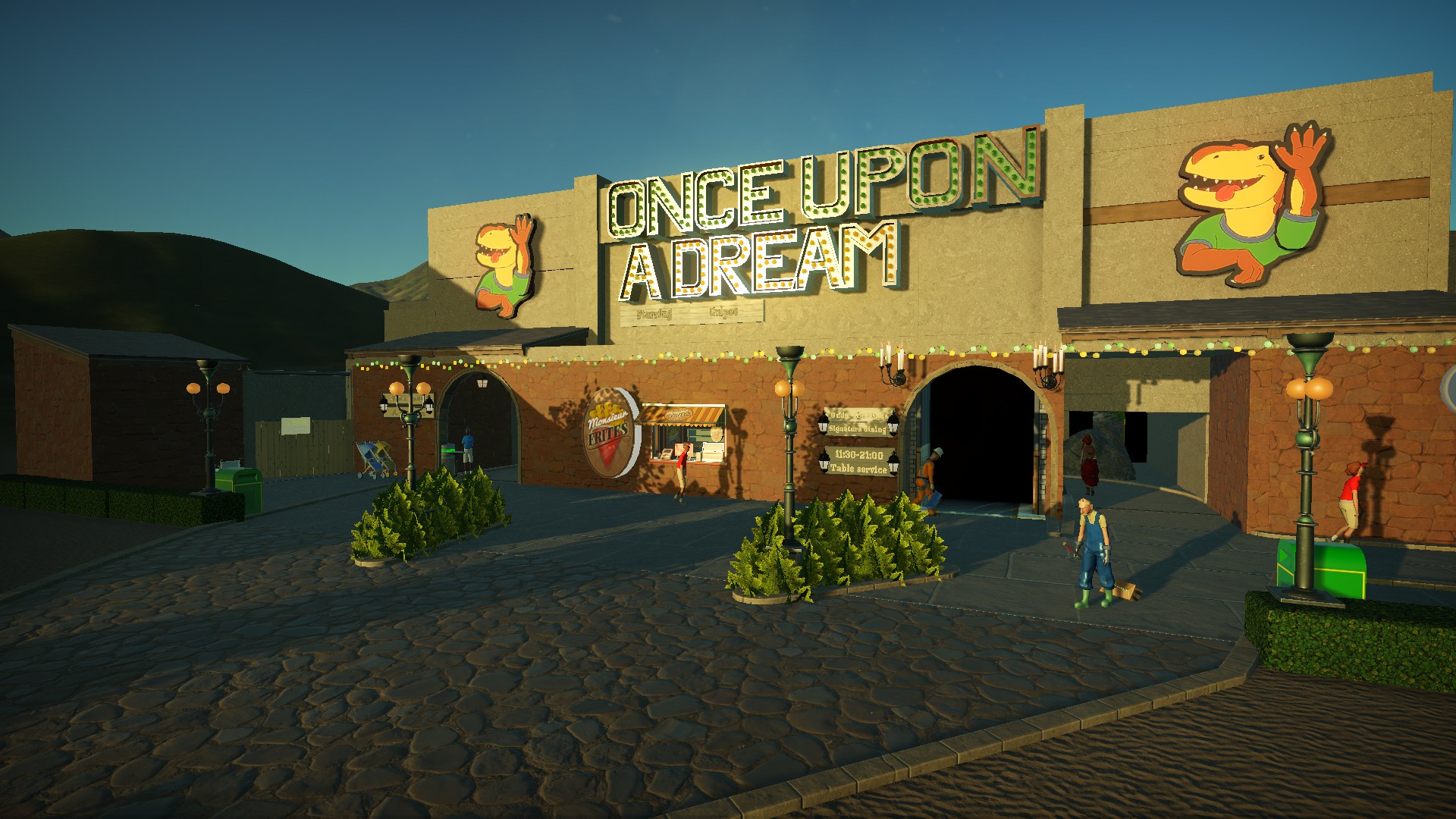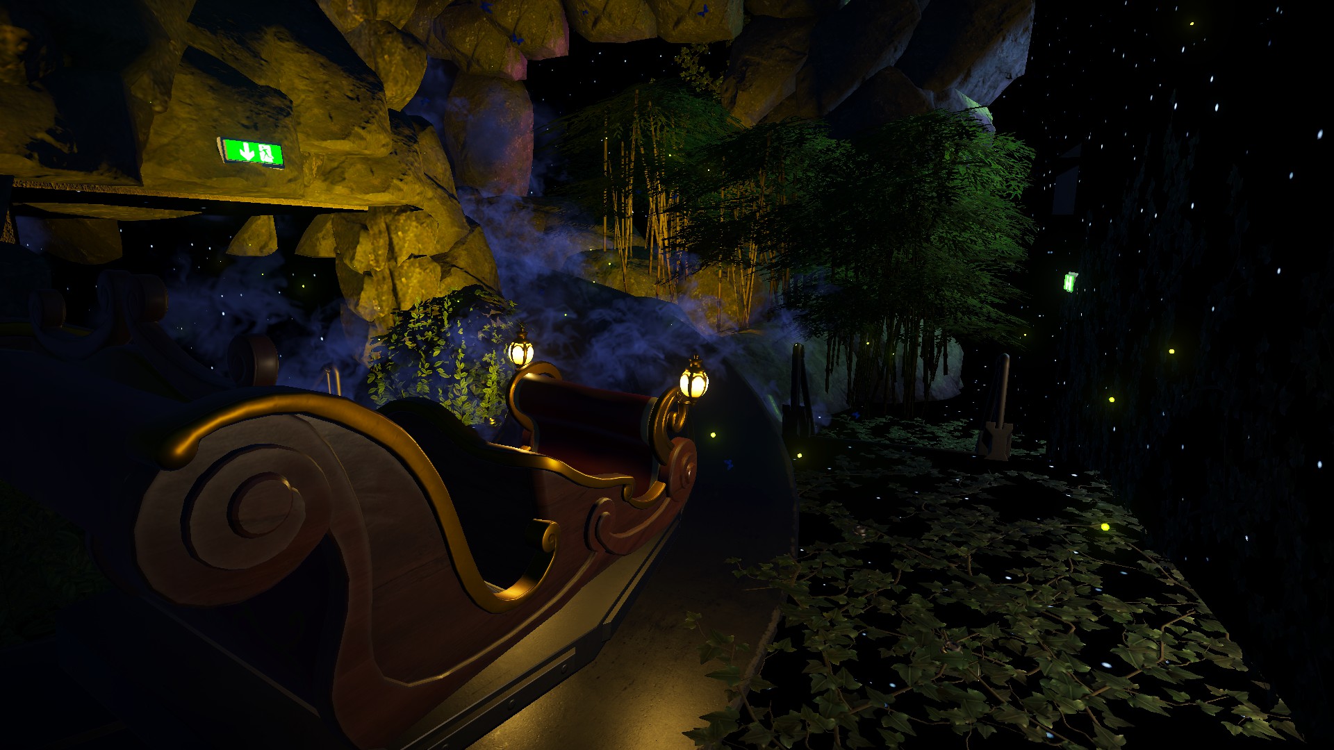 De buitenkant van ‘Once upon a dream’ is beperkt, maar voldoende uitgelicht. De naam is duidelijk leesbaar bij nacht en de ingangen en kraampjes zijn goed zichtbaar. Ook de wachtrij en het station zijn sfeervol uitgelicht. In de eerste scène wordt wat overbelicht, maar verder mooi weggewerkte verlichting die een zeer aangenaam kleurenpallet tevoorschijn tovert en belangrijk: ook dingen in het donker laat! Tekstborden springen in het spel wel funky om met licht en zijn hierdoor moeilijk leesbaar. Dat witte tekst zwart wordt wanneer er een schijnwerper op gericht wordt is een fout die ik jou bezwaarlijk kan aanrekenen.