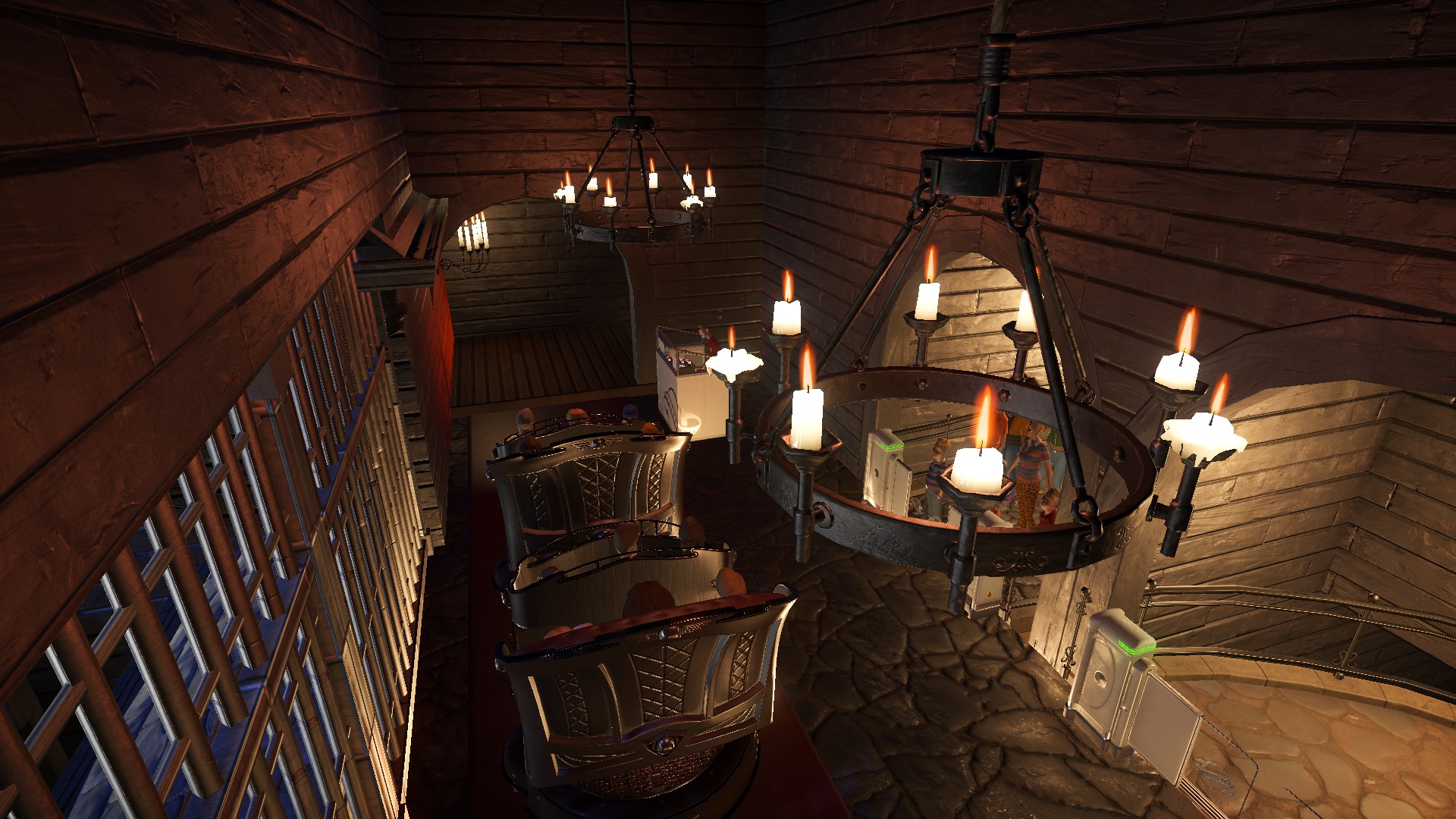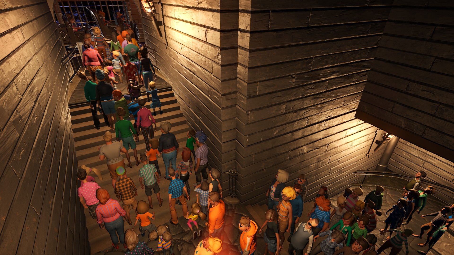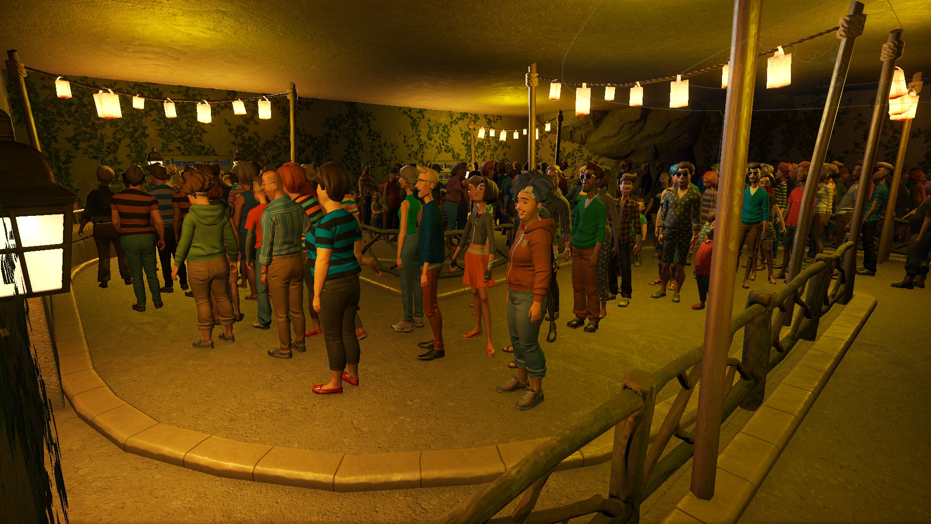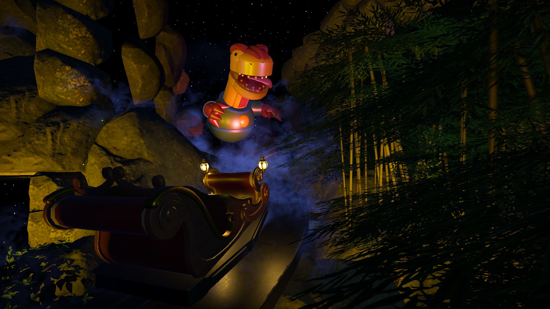 De buitenkant van ‘Once upon a dream’ is beperkt, maar voldoende uitgelicht. De naam is duidelijk leesbaar bij nacht en de ingangen en kraampjes zijn goed zichtbaar. Ook de wachtrij en het station zijn sfeervol uitgelicht. In de eerste scène wordt wat overbelicht, maar verder mooi weggewerkte verlichting die een zeer aangenaam kleurenpallet tevoorschijn tovert en belangrijk: ook dingen in het donker laat! Tekstborden springen in het spel wel funky om met licht en zijn hierdoor moeilijk leesbaar. Dat witte tekst zwart wordt wanneer er een schijnwerper op gericht wordt is een fout die ik jou bezwaarlijk kan aanrekenen.