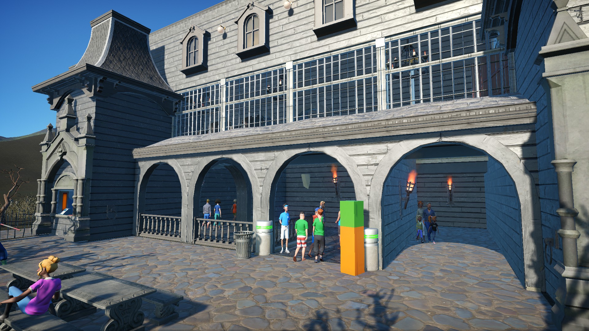 ‘Haunted Mansion’ van Nathan G bevind zich in iets dat kan doorgaan als een verlaten landhuis. Vaak zijn dergelijke landhuizen in pretparkcontext ‘niet pluis’ en deze versie is daar geen uitzondering op. Je rondrit start in de bibliotheek, dwaalt vrij snel af naar de verboden afdeling, waarna de poppen of liever boeken aan het dansen gaan. Daarna gaat het zoals dat hoort van kwaad naar erger. Mooi afgewerkt, soms een beetje karig in de decoratie, maar zeker niet op een manier dat het afbreuk doet aan het geheel. Een goed uitgevoerde huiverklassieker is zeker niet mis, maar met dat genre zijn in planet coaster al grootstere dingen gedaan.
