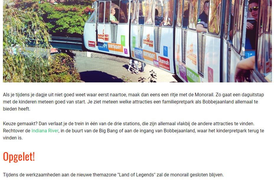 Ik kan me nu ook niet bepaald voorstellen dat gezinnen speciaal voor de monorail naar Bobbejaanland komen. Die monorail is nu niet bepaald de attractie van het park he. ;)