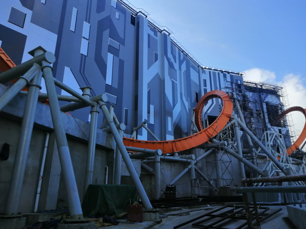 Gebouw van de SFX-Coaster is nu volledig gesloten (of tenminste toch aan de park-kant). Dus er zitten wel vorderingen in.. Snel gaat het allerminst. Als ze zo door gaan lukt zelfs een gedeeltelijke opening eind dit jaar niet.