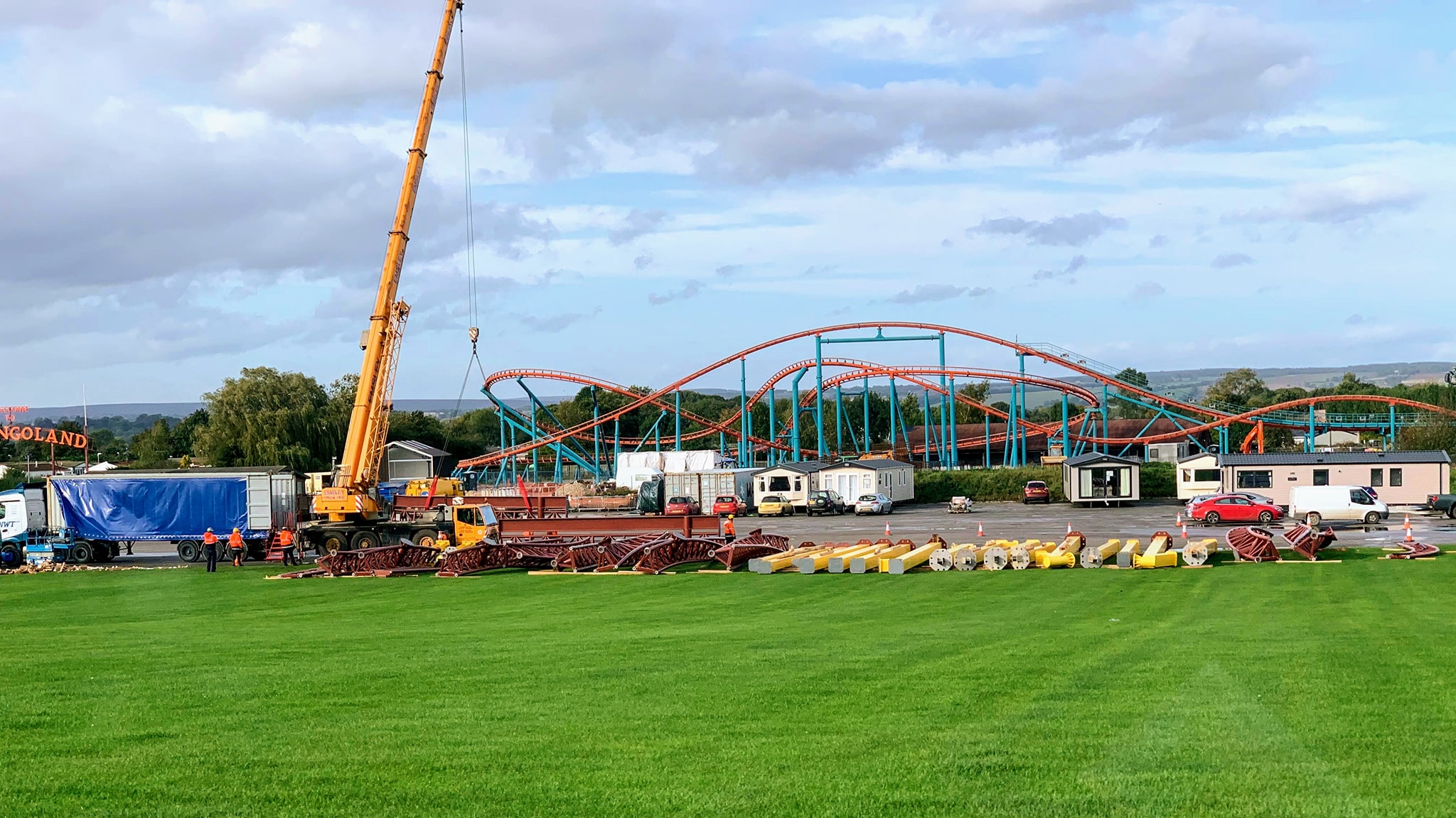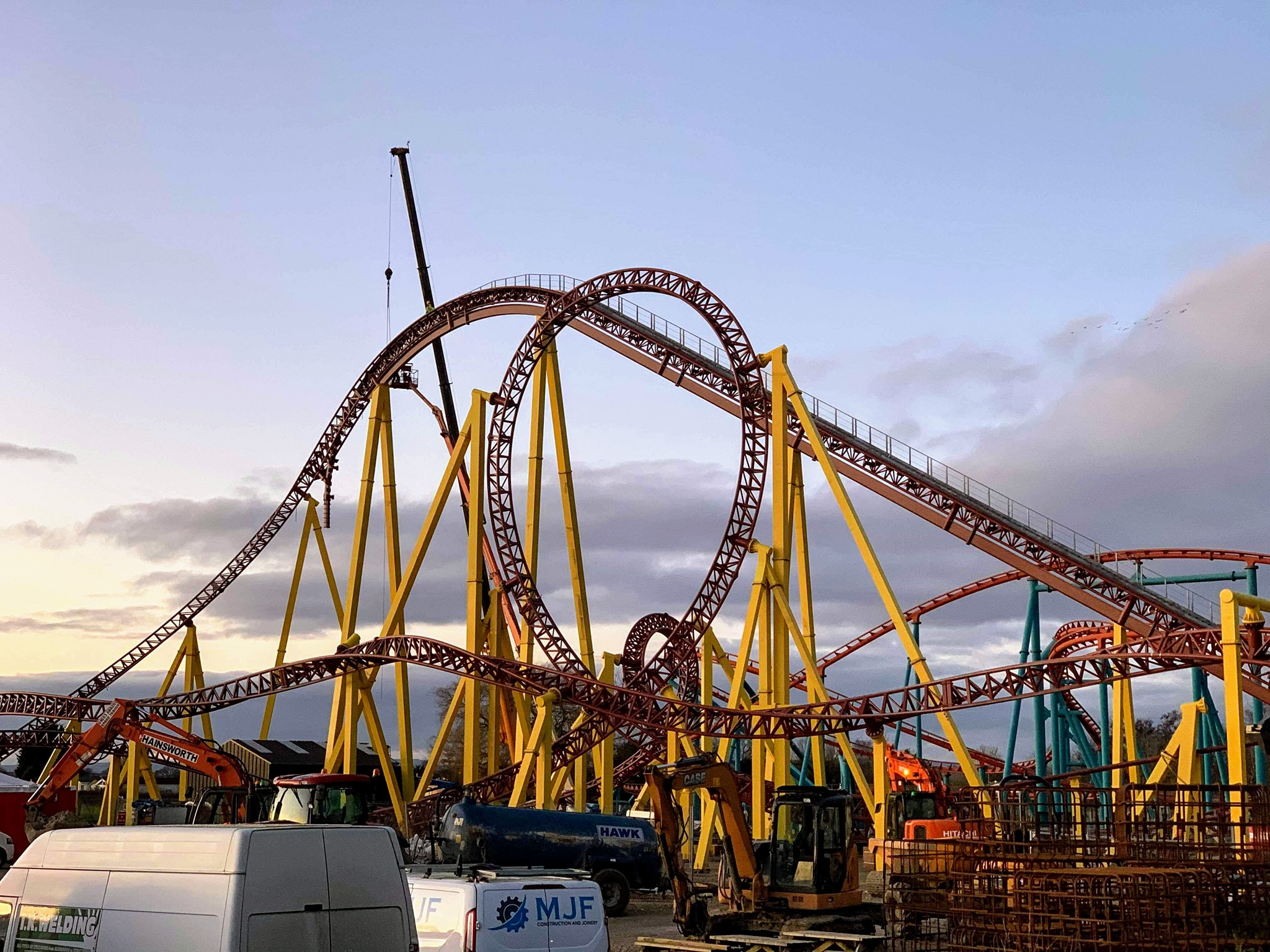 Gaat goed vooruit.. maarja, bij een parkinglot-coaster is dat natuurlijk niet moeilijk. Meer dan assembleren hoeven ze eigenlijk niet te doen. Ach.. wellicht dit park nog eens combineren met Flamingoland voor een tripje :)