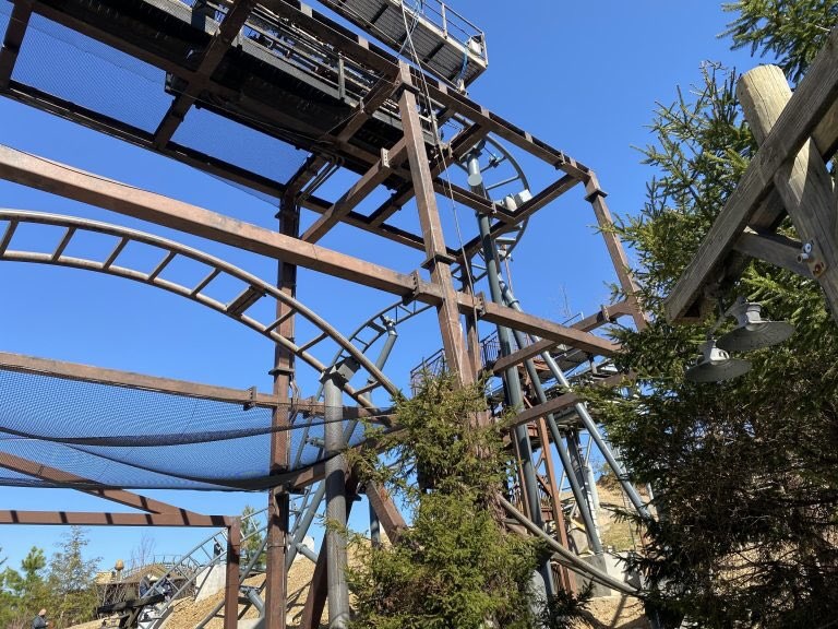 Mystery Mine is on track (yes, that was a joke) to open a week or two after the park opens. We have been working with the ride manufacturer to enhance the guest experience. Our crews are extending the track after the first outside drop and reprofiling some of the turns and transitions to provide a smoother ride.