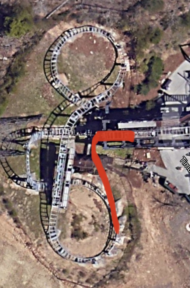 Er zijn toch meer aanpassingen aan Mystery Mine dan gedacht. De steile drop buiten (na remmen) gevolgd door een horseshoe turn werd verwijderd en vervangen door een vlakke bocht naar links met een minder steile drop. De baan is dus korter geworden.