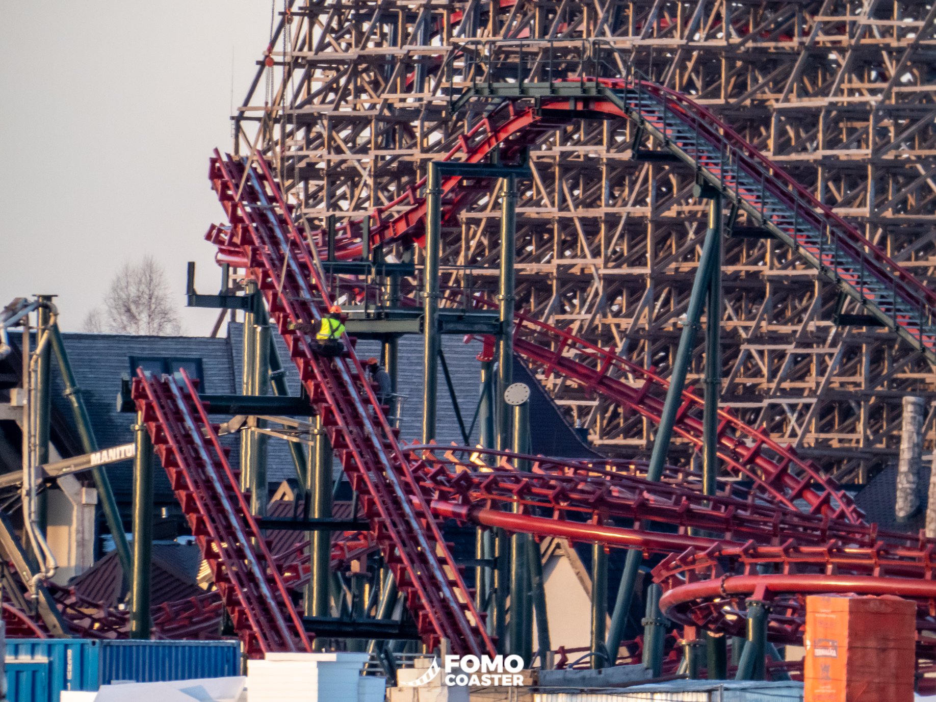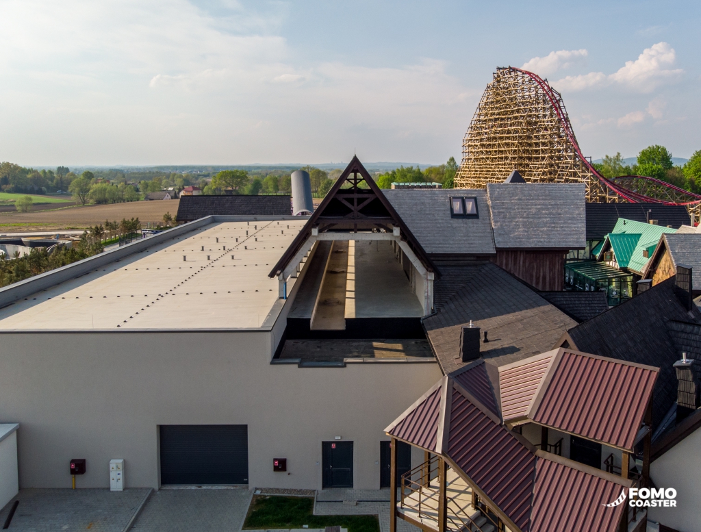 Ook aan de gebouwen rond deze coaster doet men lustig verder: