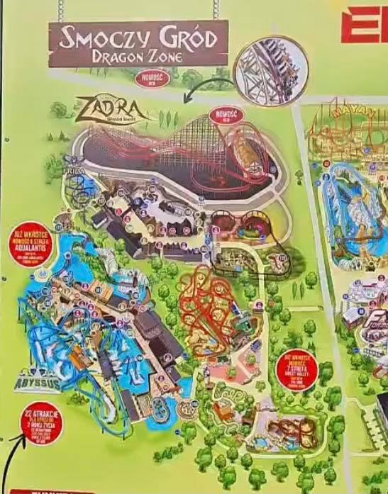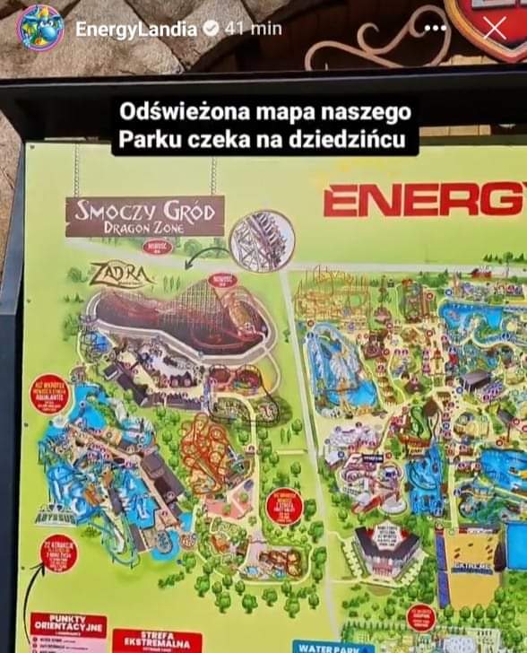 Er is een stukje nieuwe parkmap te zien in Energylandia. Blijkbaar toch niet zoveel theming als in mijn gedachten, het lijken vooral kleinere rotsen te zijn tussen de helixen. Maar surprise surprise, er is wel nog een extra kleine coaster te zien: