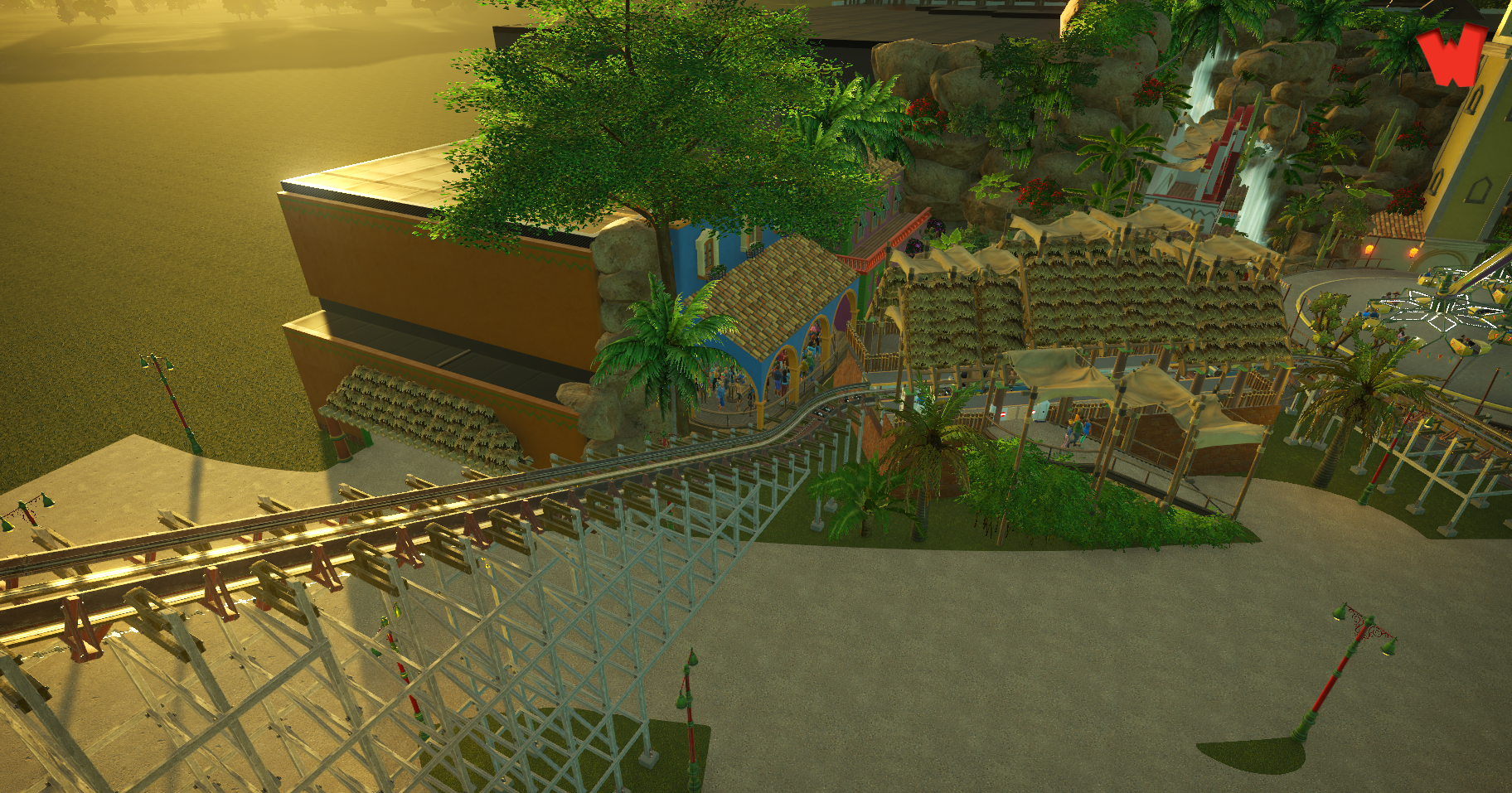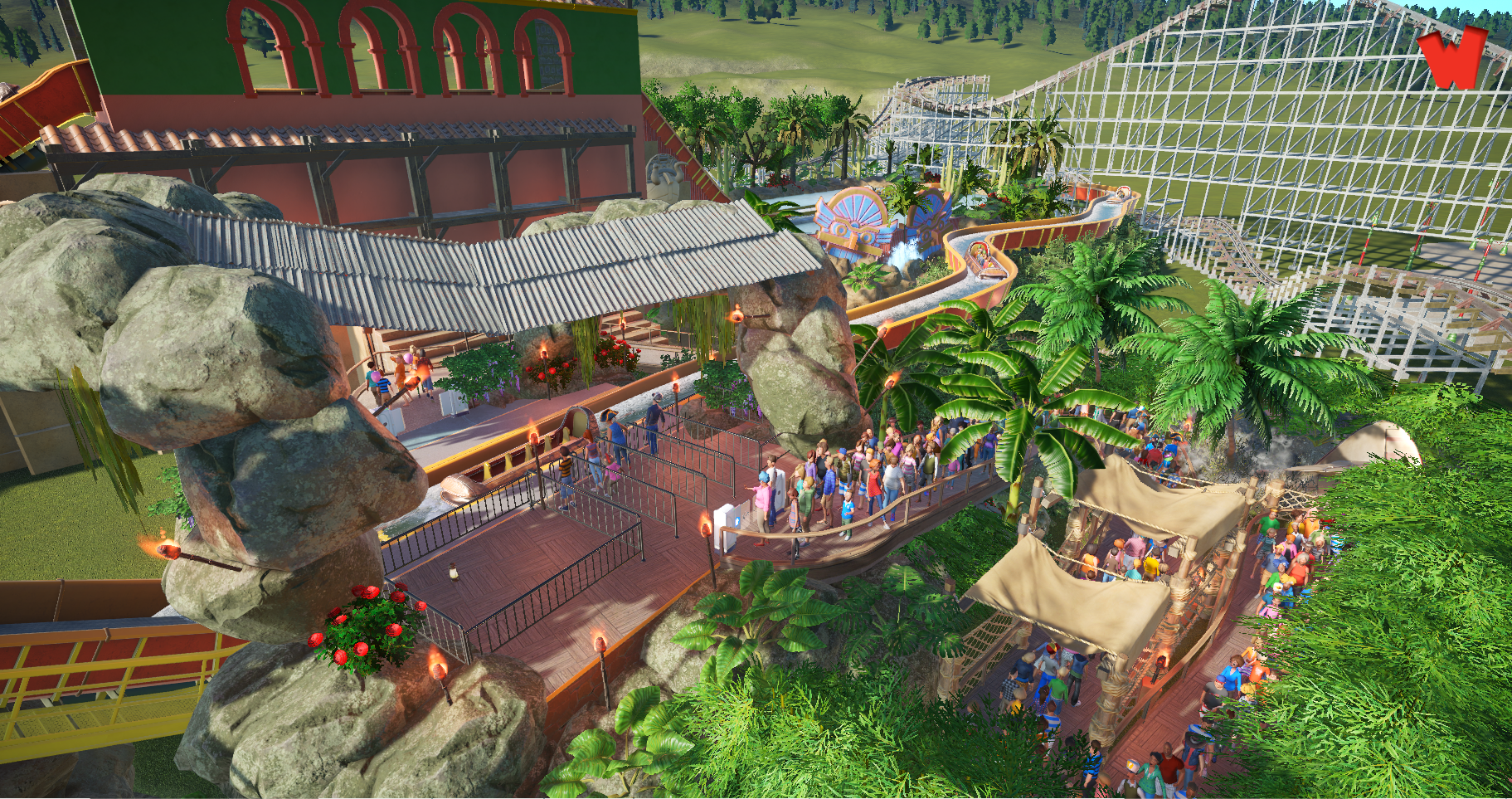 In het tropische themagedeelte is er genoeg plaats voorzien voor shops en food/drink stores. Nog niet alle gebouwen zijn volledig afgewerkt maar ze zitten in de eindfase alvast.