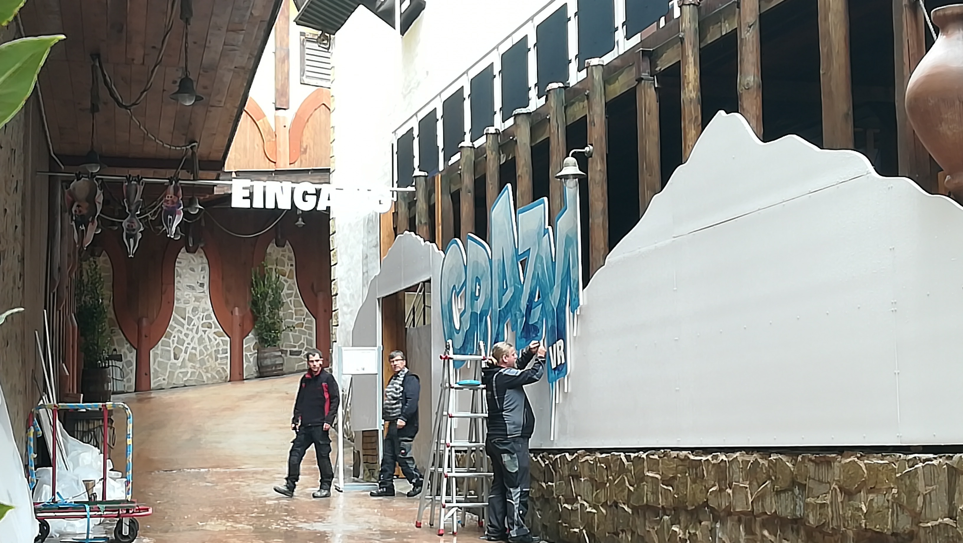 Het is wel geen grafitti maar wel degelijk 3D letters die op de witte achtergrond zijn geplakt. Ziet er in het echt op zich niet verkeerd uit..