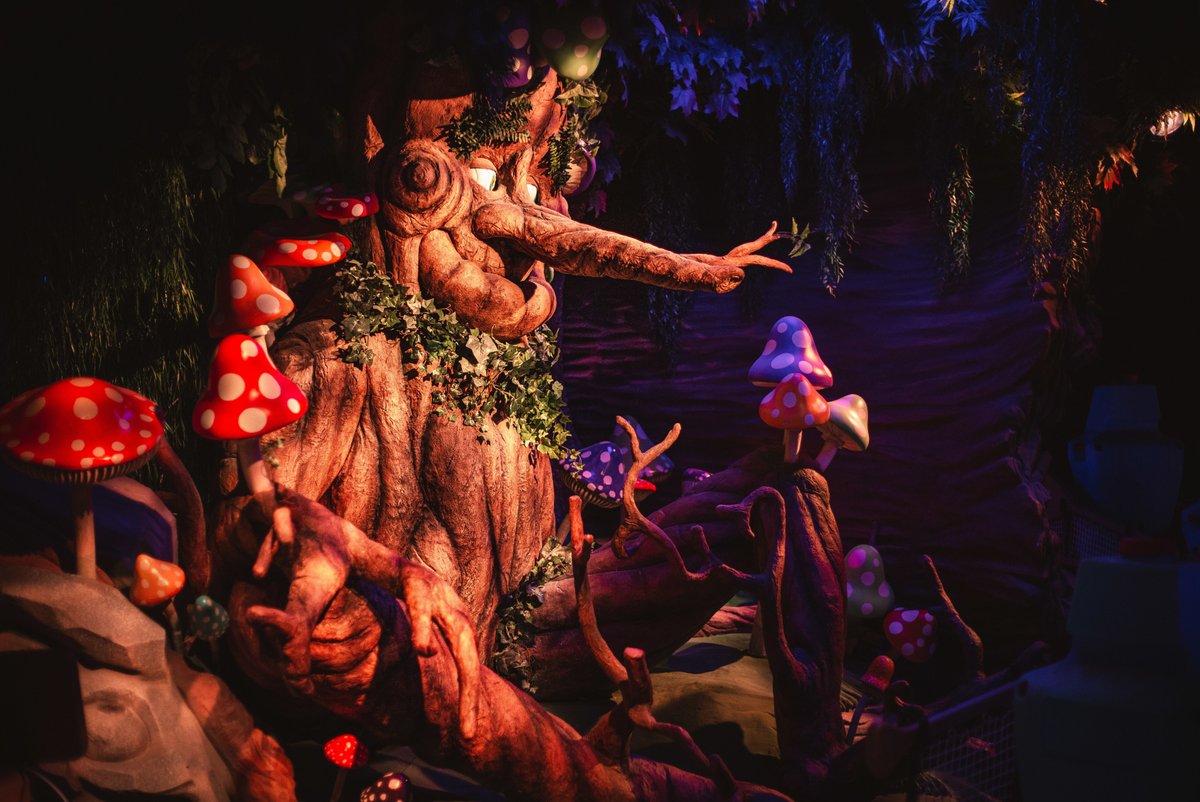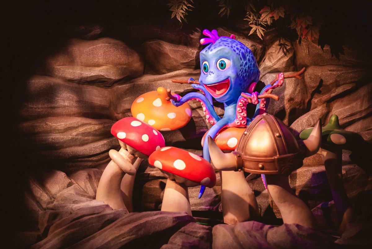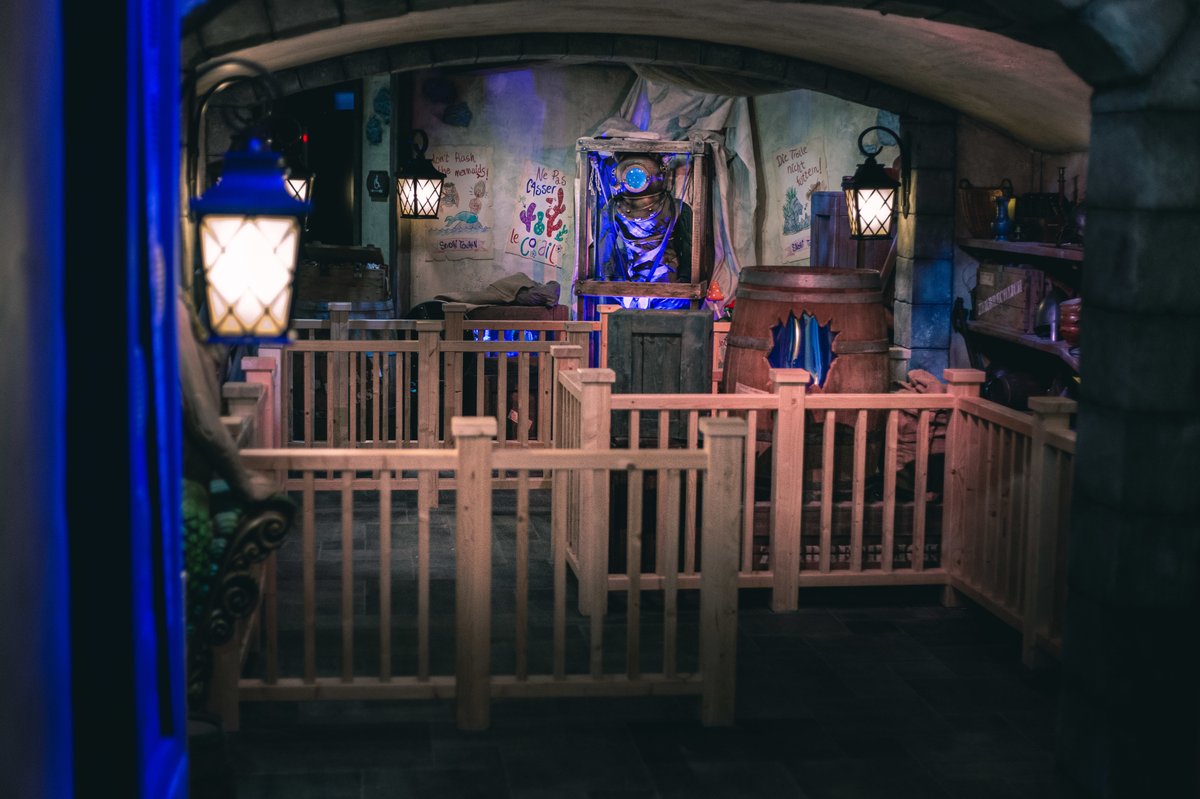 Net zoals bij Plopsaqua, een lelijk dak en sprinkler systeem voor de regen bij de onweer simulatie maar net doordat de decors zo knap uitgewerkt zijn, heb ik geen behoefte om naar boven te kijken en me te storen aan de ijzerconstructie/loods boven mijn hoofd.