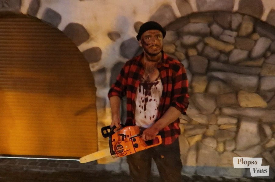 Gisteren, zaterdag 2 november, in de vooravond naar de laatste Halloween Scare Night van 2019 geweest. Af en toe een drupje regen en veel wind. Het volk van overdag (gezinnen met kindjes) verlieten al vlug het park. Het was er bijgevolg relatief kalm maar niet bij de wachtrijen van de 4 scare zones. Freak Circus hebben we niet gedaan omdat de wachtrij te lang was. Camping 't Zonnetje was zo goed als identiek als vorig jaar op enkele kleine verplaatsingen na. 't Was er wel wat zompig maar dat maakt het er alleen maar echter op. De slagerstoog en wasruimte op het einde zijn schitterend. De twee nieuwe zones (Black Swamp en Lumberjack) spraken ons minder aan. Black Swamp is enkel wat doorlopen en middenin een bellenblazer waarbij er bij ons geen enkele bel op de grond bleef liggen … Ook van Lumberjack had ik meer verwacht in zo'n decor als Heidiland. Die gang daar van zwart plastiek zag er maar wat vlug vlug gemaakt uit. Lumberjack kon veel origineler gemaakt worden dan dat! De acteurs zaten wel overal goed in hun rol.