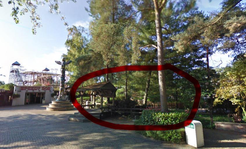 Volgens mij hebben ze dat huisje verwijdert of gaan ze het verplaatsten, want locatie speeltuin lijkt me dat bosje waar dat huis, of prieeltje oorspronkelijk stond.