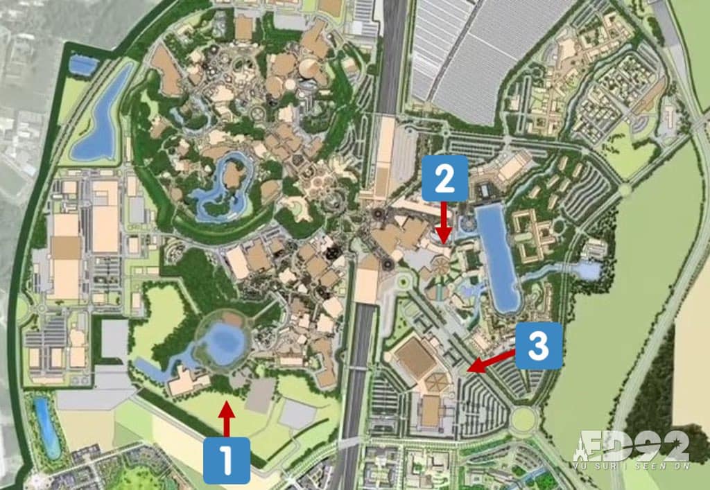 2) De uitbreiding van Disney Village met een mogelijk nieuw hotel aan de oever van Lake Disney op de plaats van de Disney Event Arena.