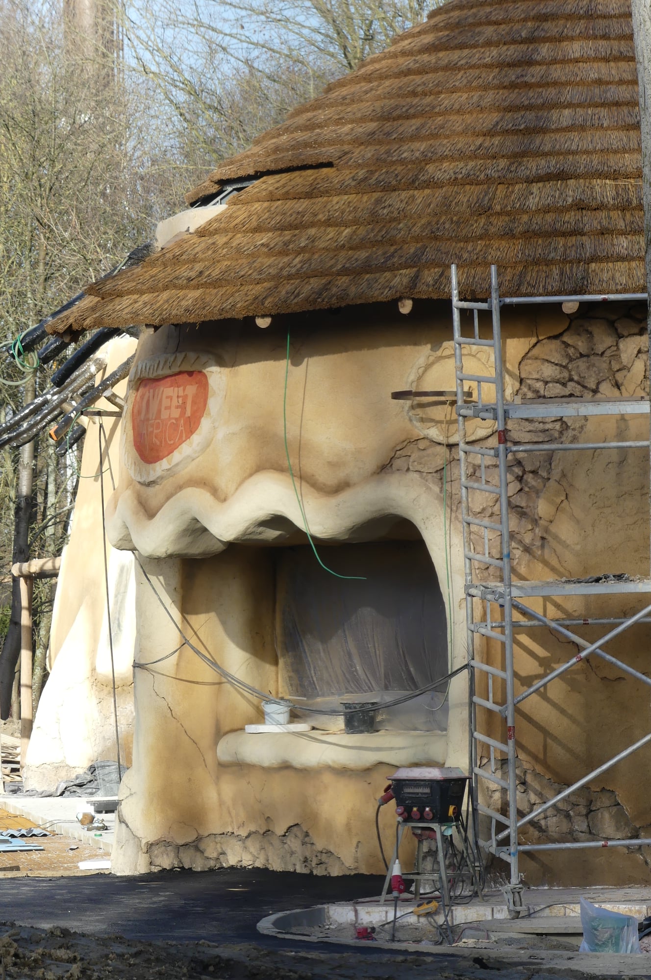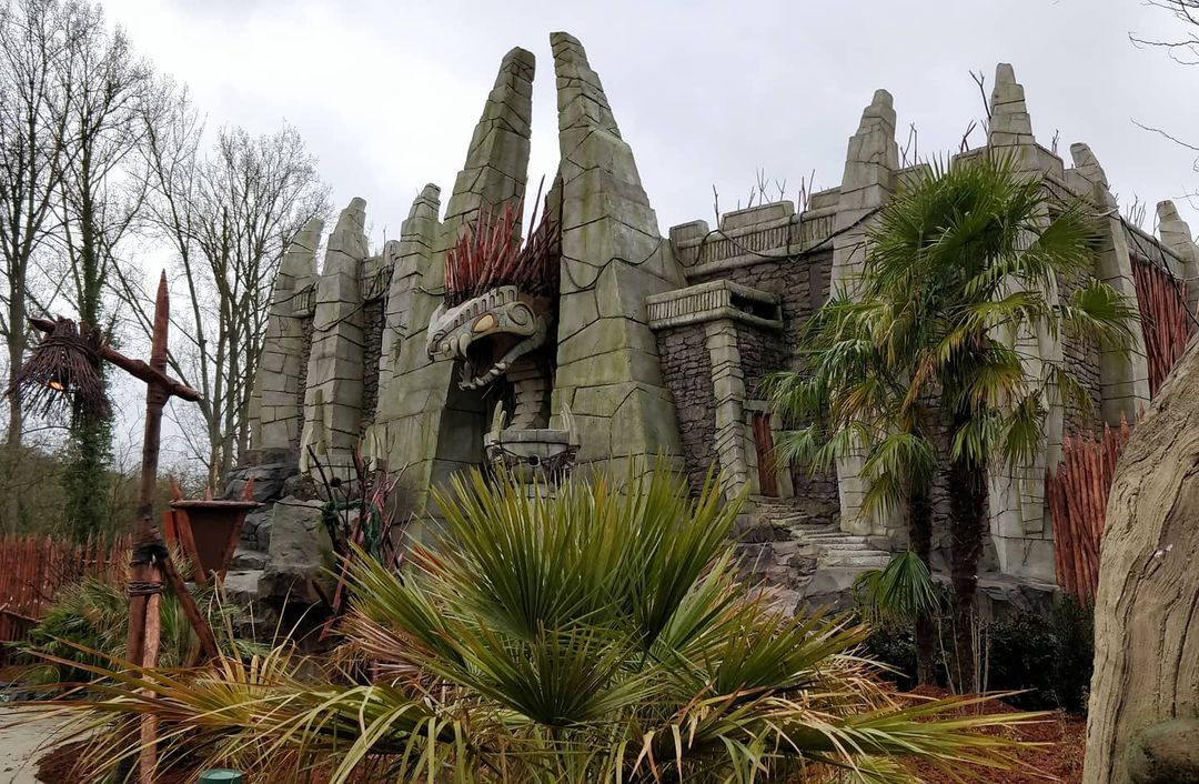 Het is nog niet van het niveau van die Egyptische tempel bij Oziris in Parc Asterix: daarvoor blijft de schaal toch nog iets te beperkt. Maar het kan er wel zonder schaamte naast staan. Leuk dat ze zoveel reliëf in die gevel hebben gestoken. :D