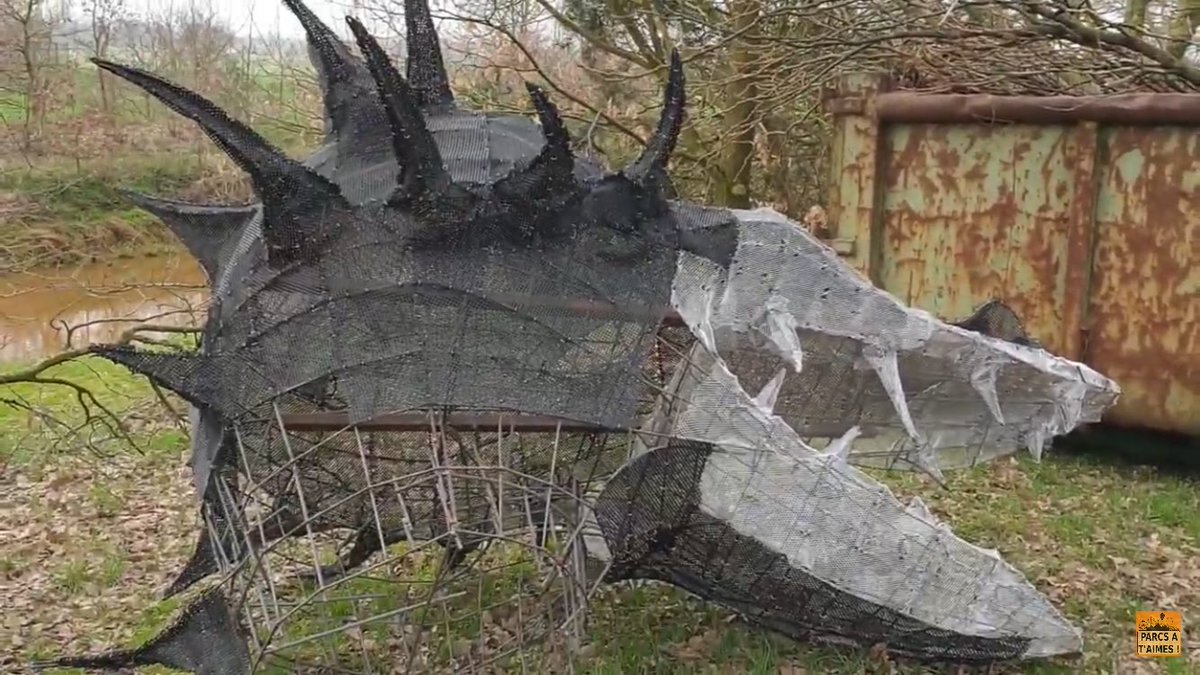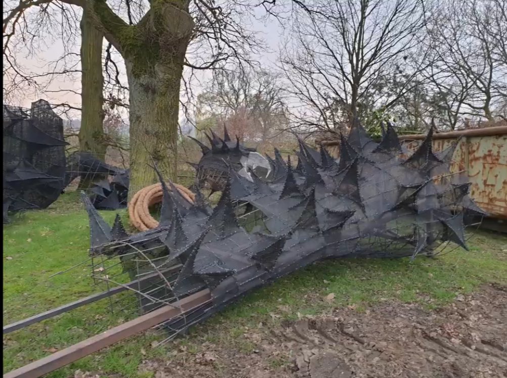 Meer details over de thematisatie van Typhoon, een beeld van de blauwe Typhoon en enkele supports die al recht staan.