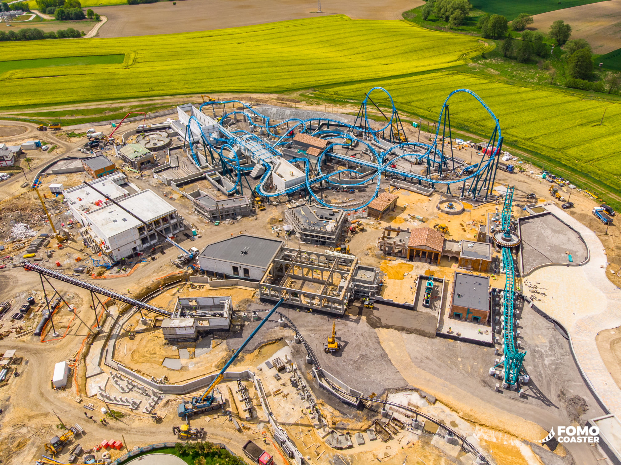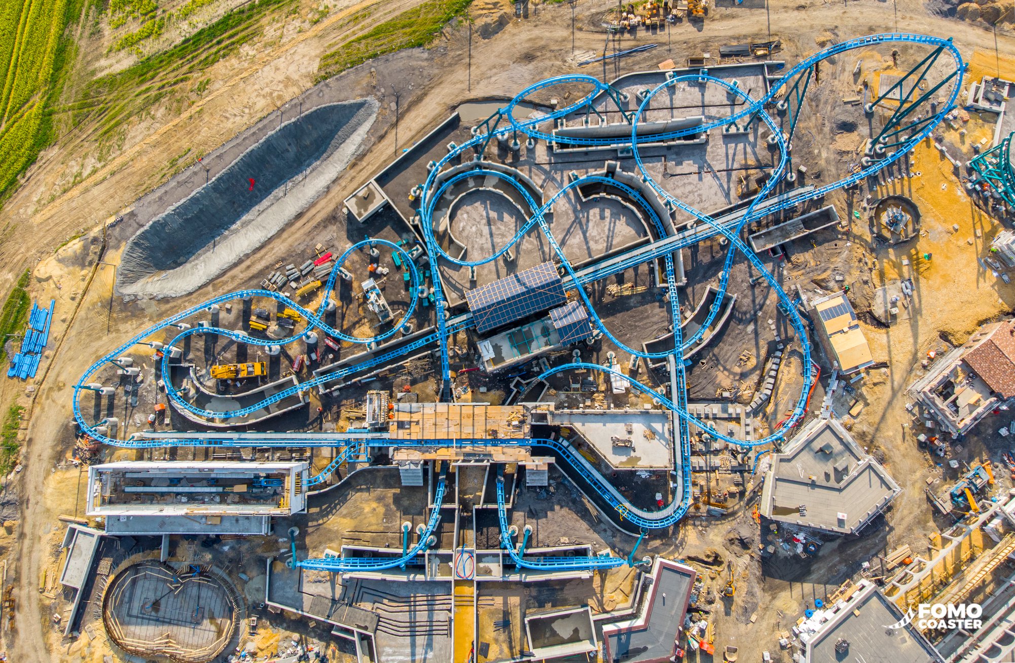 Nieuwe drone-foto via FOMO. De vaargeul voor de bootjes begint uit het stationsgebouw te "groeien". Ook zie je op deze foto duidelijk dat je best een behoorlijke afstand zal moeten afleggen om van de ingang van het park naar Abyssus te raken.