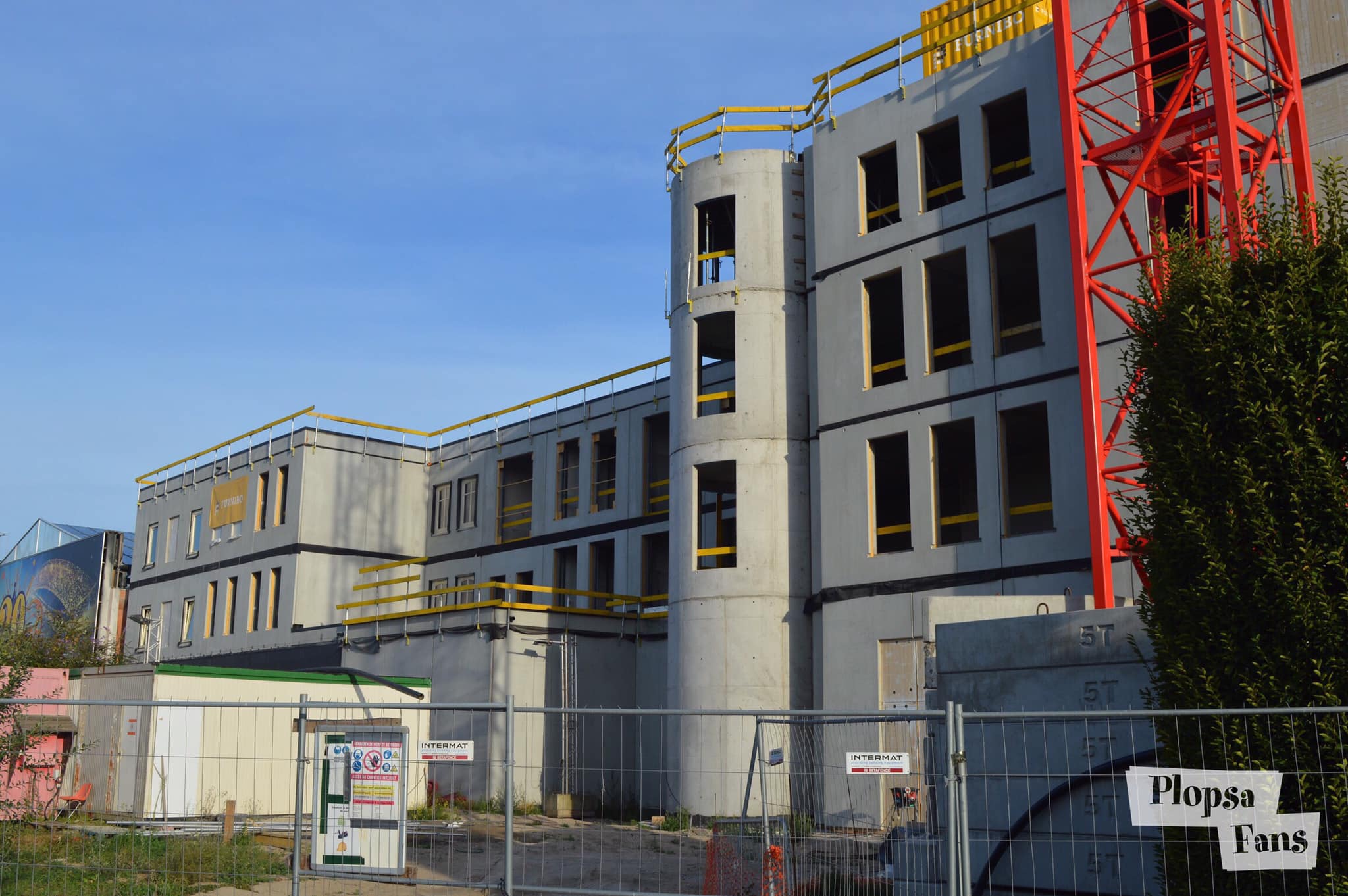 Het filmpje lijkt me al even geleden gemaakt te zijn. Men staat ondertussen nog verder als wat je hier kan zien. Gewoon even "Plopsahotel" op Instagram en Twitter ingeven, dan zie je meteen recentere foto's. :)