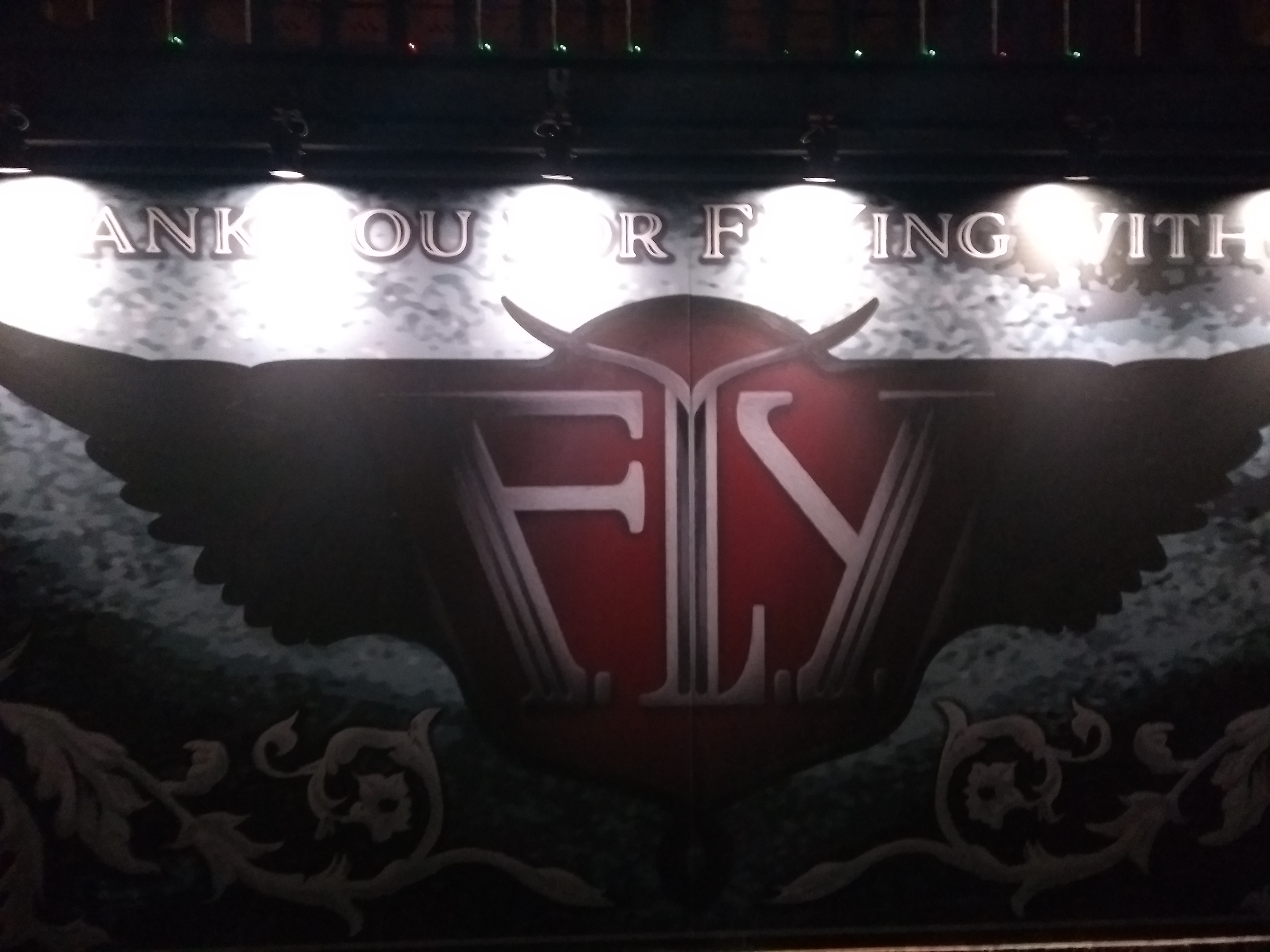 Het station van fly is ook zeer mooi afgewerkt en het systeem van Vekoma met de draaiende zitjes is zeer efficiënt. De metaaldedectoren voor het station gingen bij mij wel elke keer af door mijn jas en dus moest ik elke keer mijn lege zakken tonen. Ondanks dat duidelijk staat aangegeven dat niets mag worden meegenomen zag ik toch veel mensen die terug naar de lockers werden gestuurd.