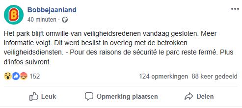 Heeft er iemand een idee van wat er vandaag aan de hand is in Bobbejaanland? Ze hebben zonet laten weten dat ze een hele dag gesloten blijven wegens veiligheidsredenen.