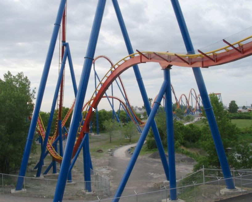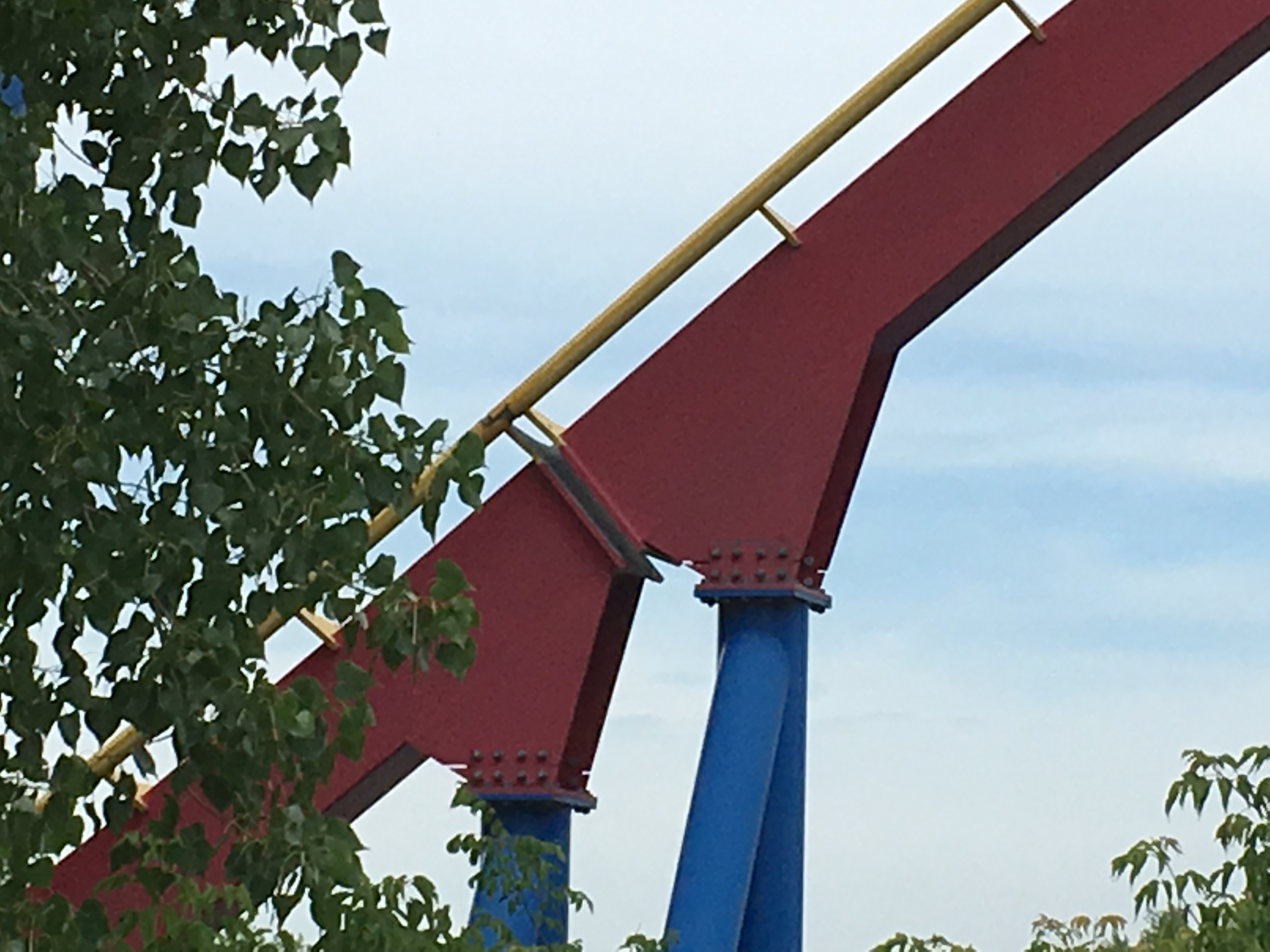 Nu weet ik wel dat de baan een tijdje geleden is omgebouwd van stand up naar floorless, maar ik weet niet ofdat deze support hier ook mee te maken heeft. Afgaande de onrides van deze baan lijkt deze wel vrij dicht te komen bij de baan die eronderdoor gaat.