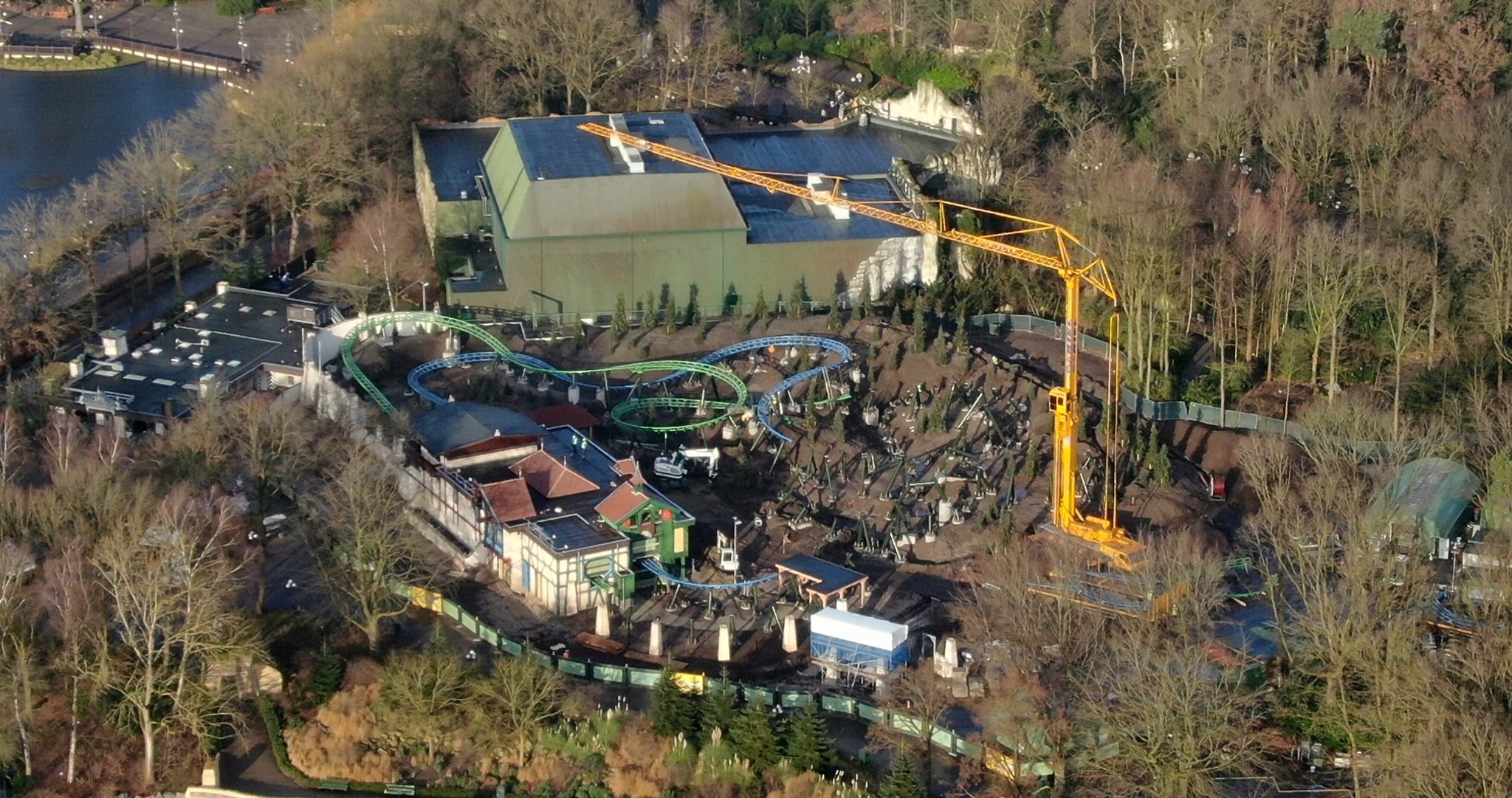 De groene loods steekt inderdaad nog meer af dan ervoor, maar is vooral omdat de bomen nu gekapt zijn. Op heden zijn er geen plannen om dit aan te pakken, maar ik hoop toch wel dat dit in de toekomst snel een prioriteit wordt. (...) Maar nu de bomen gerooid zijn en je een open treintje hebt, valt die loods veel meer op. Bovendien moet het hier een Alpenthema voorstellen, dus kunnen ze niet anders dan hier ergens een berg te ontwerpen... Tenzij ze er ook een vulkaan van zouden maken ;)