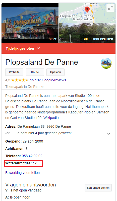Op die manier kan Bellewaerde “De Brug” (Niagara) en “De lekkende lifthill” (doorgang onder River Splash) ook als waterattractie vermelden ...
