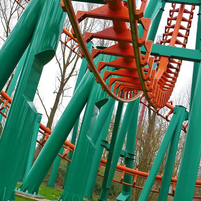 Nee, Condor (Walibi Holland). Door de nieuwe treinen die iets breder zijn dan de oude, hebben ze sommige supports moeten aanpassen. Of het nieuwe supports zijn, of de oude met "een stuk eruit gesneden" weet ik niet. Wel zijn ze verwijderd en teruggeplaatst geweest.