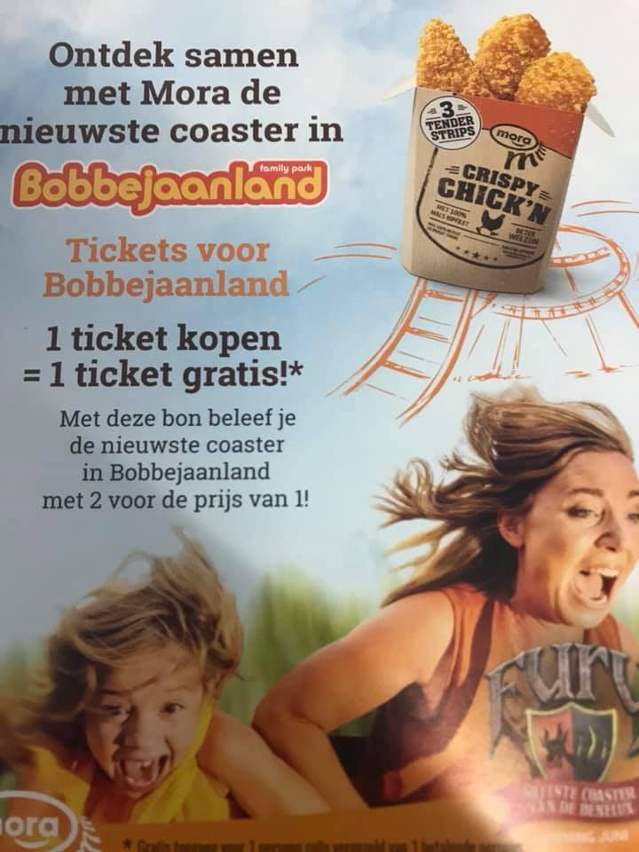 Geen idee of deze hier al staat, maar Bobbejaanland 1+1 actie ism. Mora.