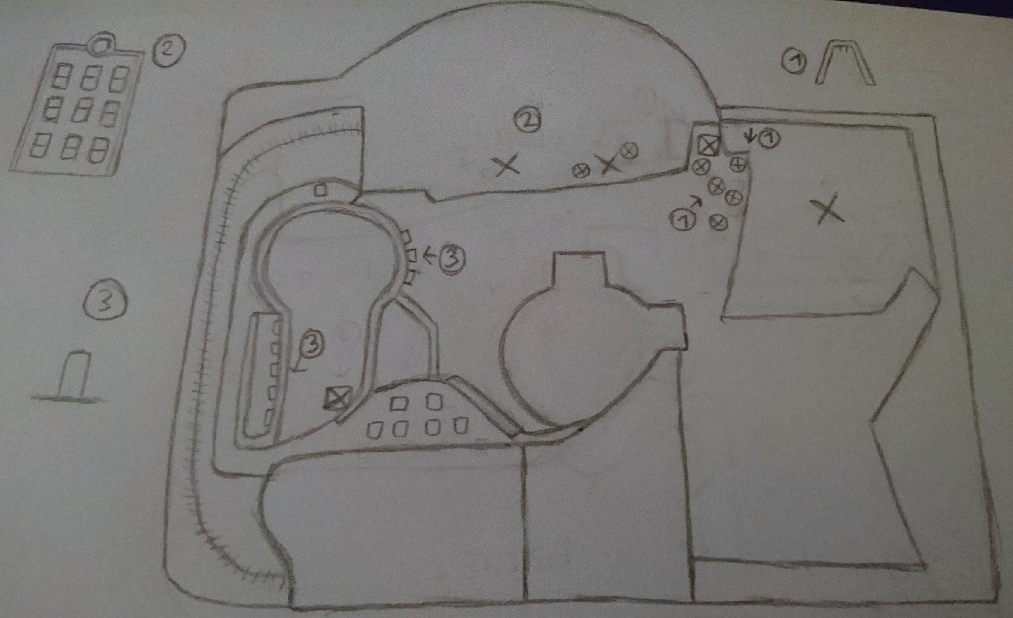 Op Phantafriends.de maakt iemand nog een ander interessant schetsje van de bouw en daar zien we een ommuurde cirkelvormige ruimte bij nummer 3. (de tekening van hierboven is dus 90° gekanteld: dus die cirkel linksboven volgt eigenlijk die gebogen muur rechtsboven op de bovenste tekening) In mijn wildste fantasieën past daar zonder problemen een eindeloze-trein-dark-ride genre carnaval festival, maar dan op de kelderverdieping. Kan iemand die fantasie vakkundig aan diggelen slaan of verder voeden?