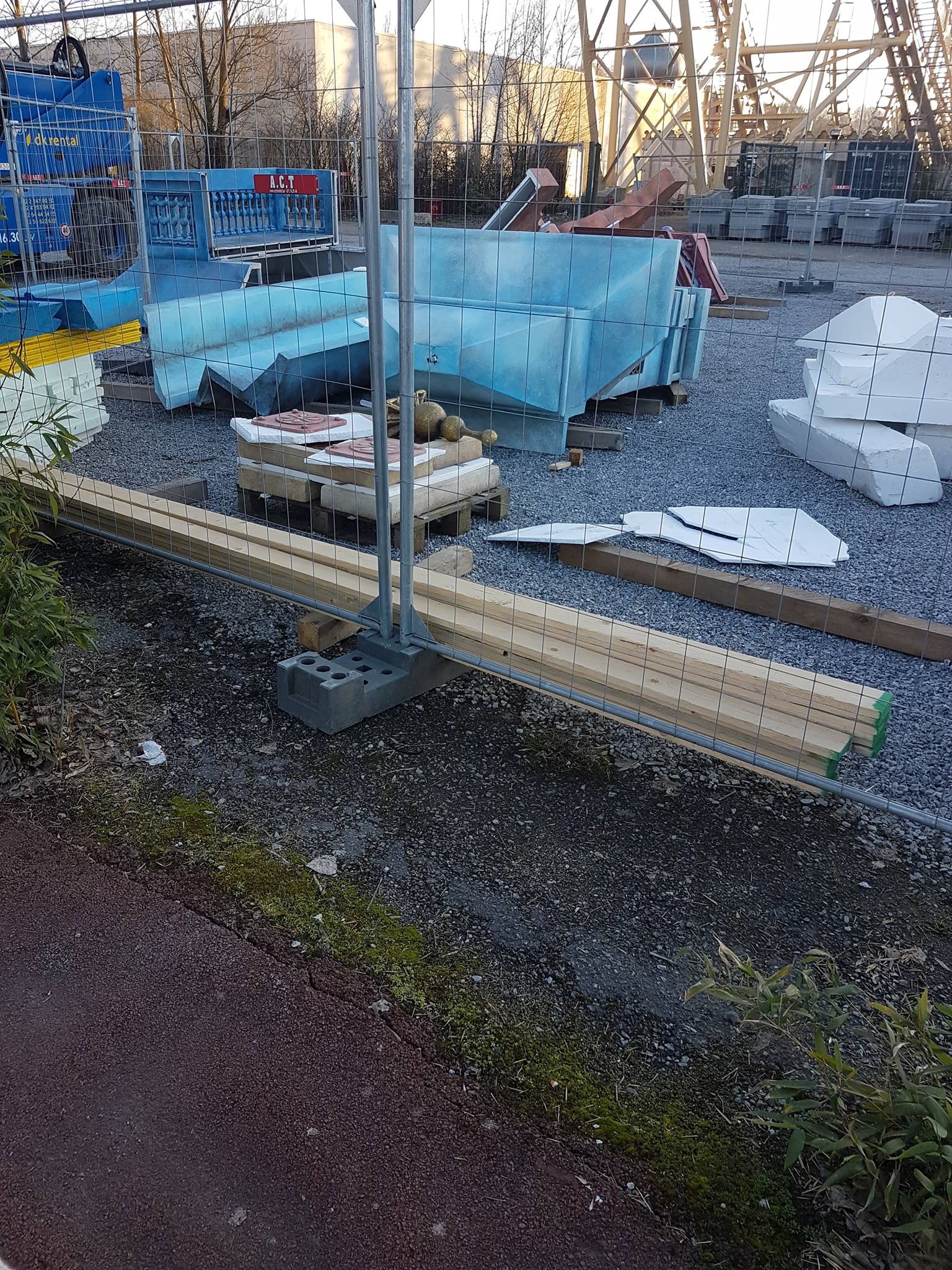 - Dezelfde props lagen nog steeds op de personeelsparking te liggen. Wel zag ik dat er een aantal beschadigd waren... Dat dat maar goed komt.