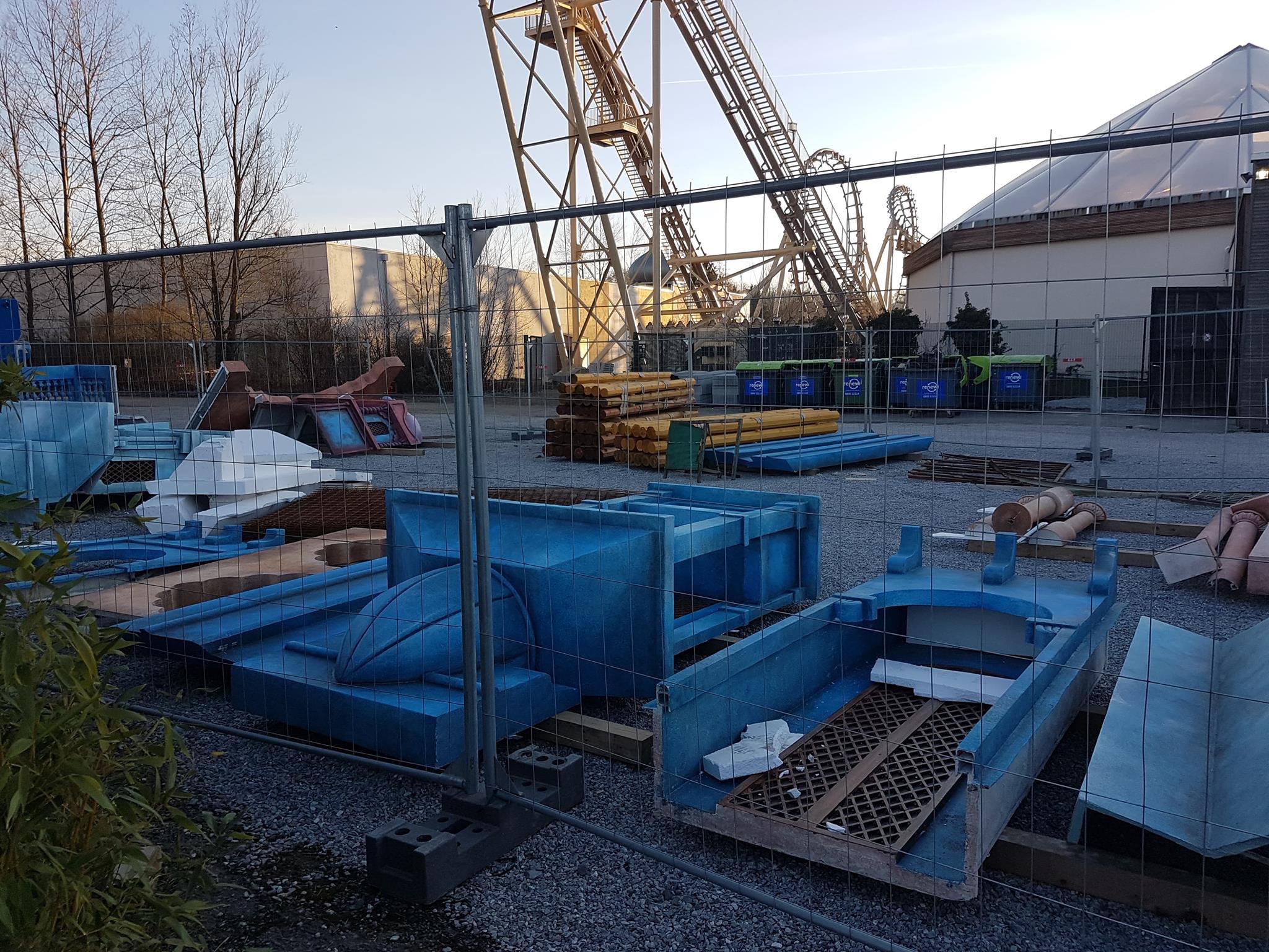 - Naast de personeelsparking zijn ze aan een stevig tempo een nieuwe loods aan het maken. Ik vermoed nieuwe ruimte voor Technische Dienst en/of opslagruimte. Met de komst van de nieuwe Megacoaster, waar toch ook wel enkele bestaande loodsen voor moeten wijken, lijkt mij dit de meest aannemelijke kanshebber.