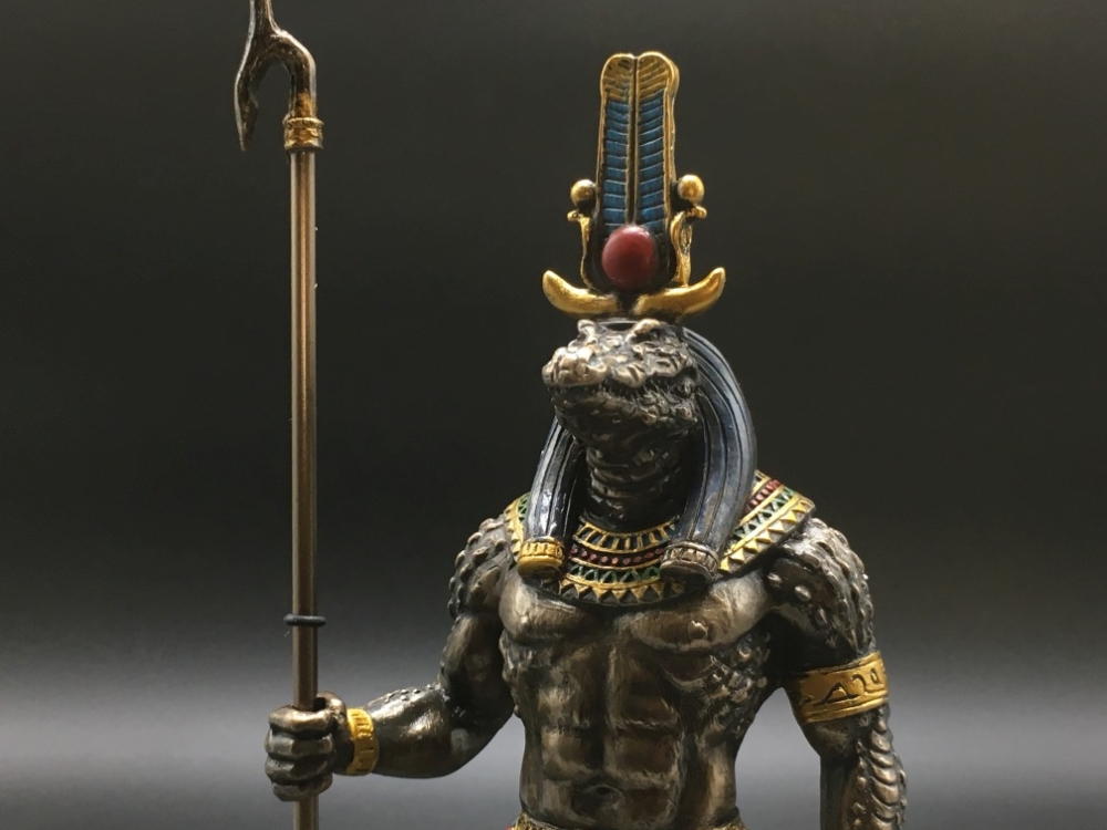 Gebaseerd op de nabijgelegen Egyptische attractie en het design van de trein zie ik ze voor het thema wel werken met de krokodillengod Sobek. Het past in het thema en zowel de ogen als tanden komen me behoorlijk krokodillig over.