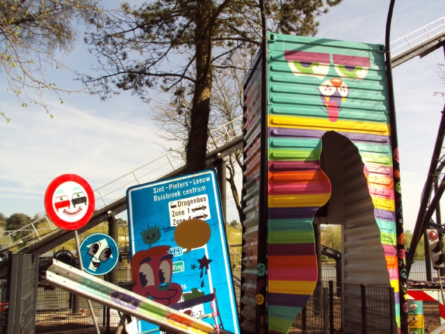 Ik blijf bij mijn mening van enkele weken geleden: op zich zijn dat helemaal geen slechte muurschilderingen en hebben de graffitikunstenaars goed werk geleverd, maar het is gewoon enorm misplaatst. Dit hoort simpelweg niet thuis op een middeleeuws kasteel. Al vind ik het inderdaad beter uitgewerkt dan die verkeersbordenfoto van Pretparkfreak7. Extreme noobvraag: in welk park is dat?