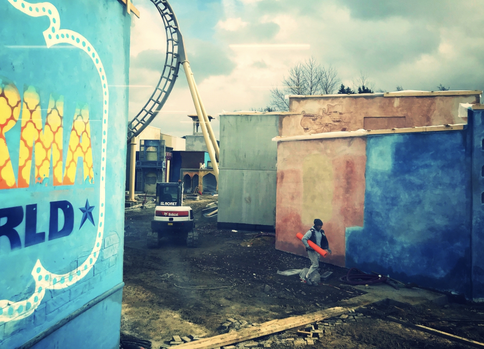 De muurschildering bij Aqualibi... Mwaa, het is al beter dan een lelijk betonnen muur natuurlijk. Misschien nog even wachten tot het af is. Wel leuk dat ook deze zone (vermoedelijk) wat extra exotische vegetatie gaat krijgen! Ben persoonlijk wel zeer benieuwd naar Karma World! Enkel over de nieuwe kiddie coaster blijft het wel erg stil...