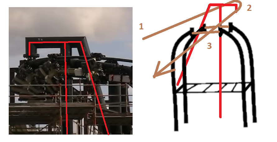 Het hoogste punt wat we nu kennen is die rol. Er zal nog een hoger punt moeten komen. Het hoogste punt van de baan zit normaal na de launch (omdat de trein moet kunnen terugrollen de launchstrook in, of vanaf dat hoogste punt moet kunnen rond komen). Dat zal dus relatief ver van de geluismuur af zijn en niet zo overdreven veel lager.