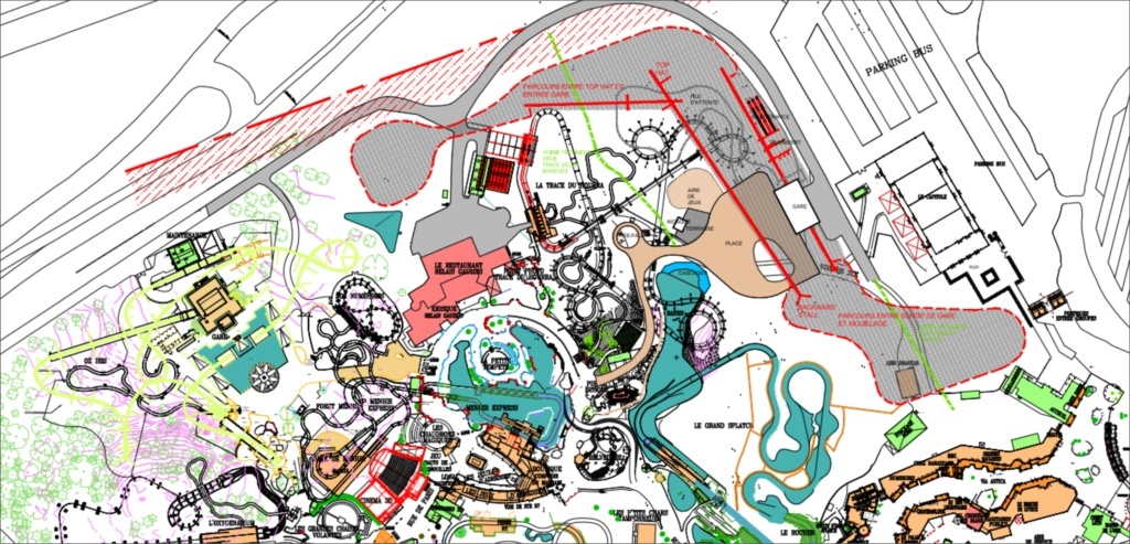 Als ik naar de animatie kijk zie ik de lifthill en de eerste bochten van Trace du Hourra liggen. De baan komt dus achter de bobbaan te liggen. Ik kan echter niet goed achterhalen of de nieuwe baan dan richting Egypte, of juist richting Mainstreet loopt. Egypte lijkt me echter logischer. Aansluiting kan dan zowel onder Oz'Iris door (zoals hierboven beschreven) of langs Trace du Hourra af.