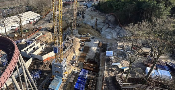 Vanop Trace du Hourra kunnen waaghalzen aardige plaatjes maken van de bouwwerf. Als fotografische onride-broekschijter maakte ik enkele vluchtige foto's. Het kan haast niet anders dan dat dit - meer dan in Warner Madrid, Tusenfryd, Legoland Deu of Chessington - dè achtbaan van 2023 gaat worden in Europa en mogelijk een eind daarbuiten.