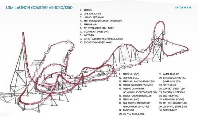Het wordt een Intamin Launch coaster met volgende statistieken.