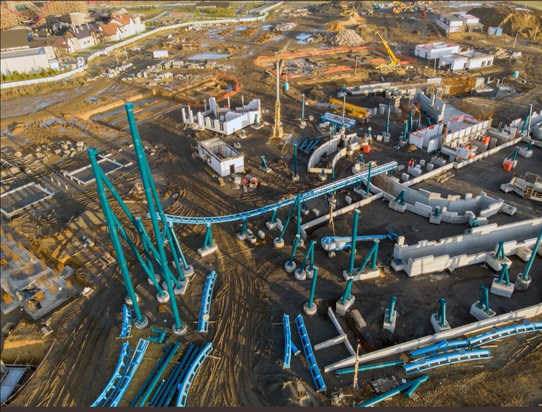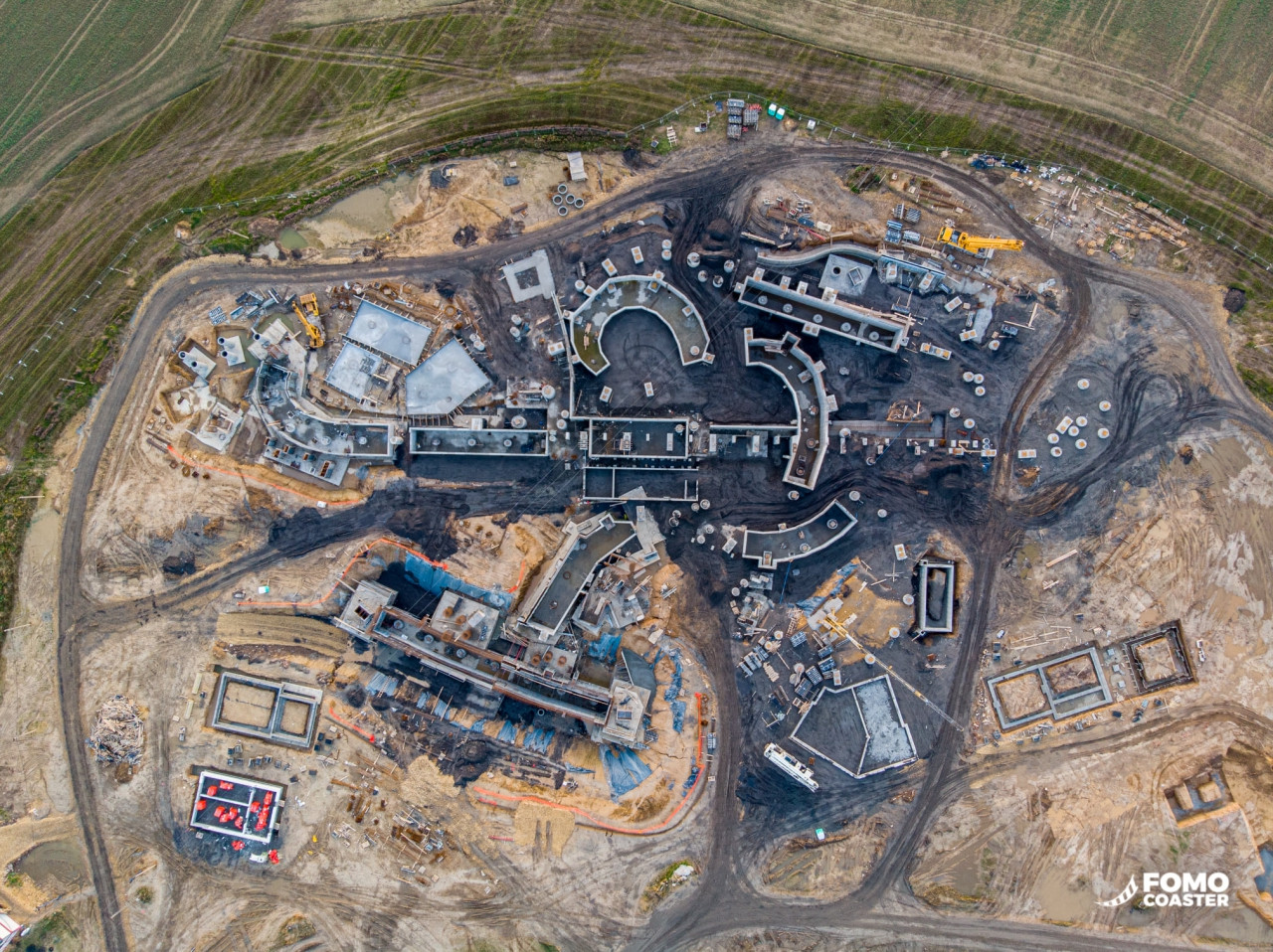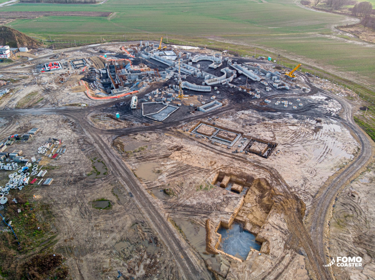 Ook de funderingen voor de Disk'O Coaster kan je rechts al zien: