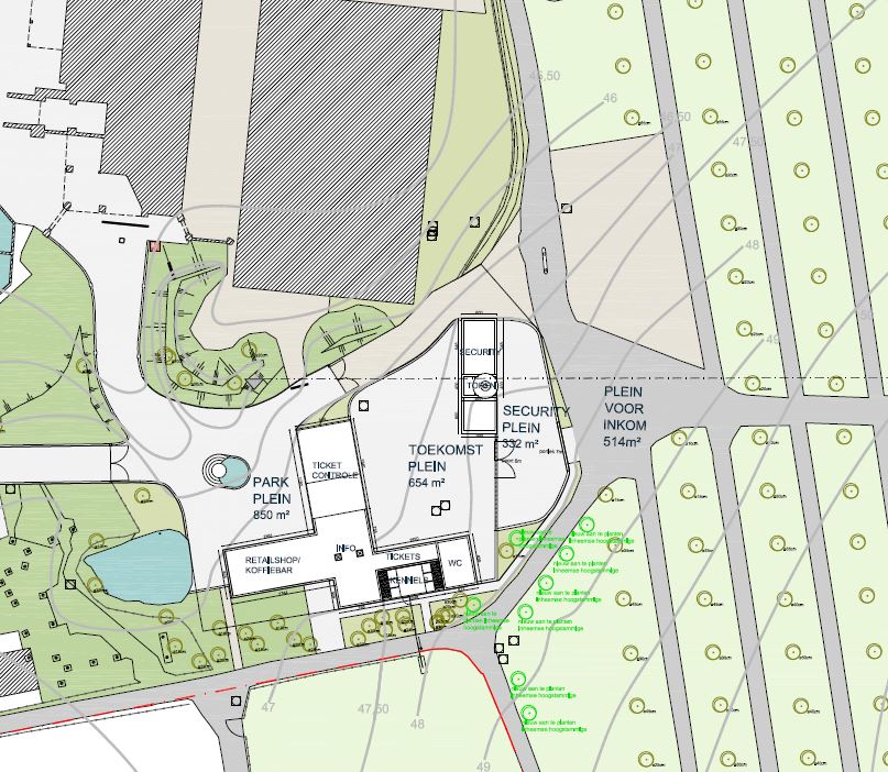 De nieuwe Mexico-ingang staat niet zo gedetailleerd ingetekend op het plan. Er waren ook wat tegenstrijdige berichten over al dan niet een horecapunt en shop, maar volgens het plan komen deze er niet...